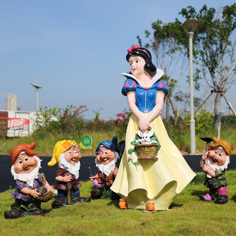 户外花园庭院景观草坪布置玻璃钢卡通人物雕塑小矮人白雪公主摆件