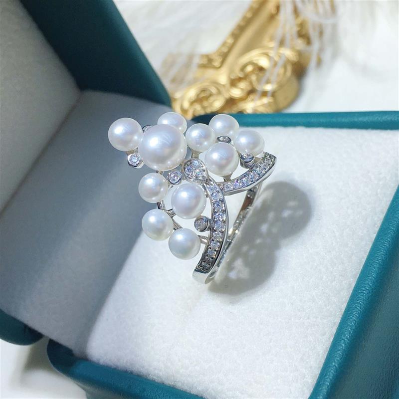 小红书网红热推皇冠V型tian然淡水珍珠S925纯银开口可调节戒指