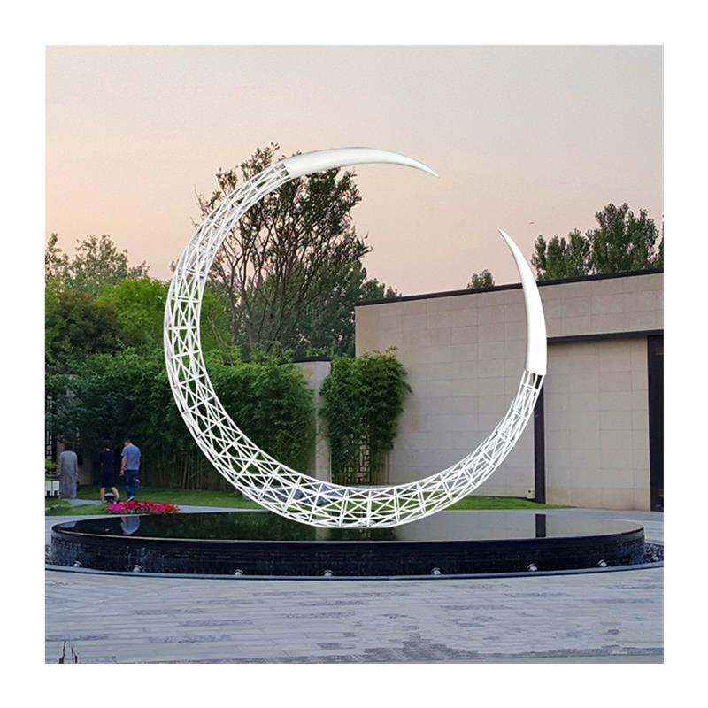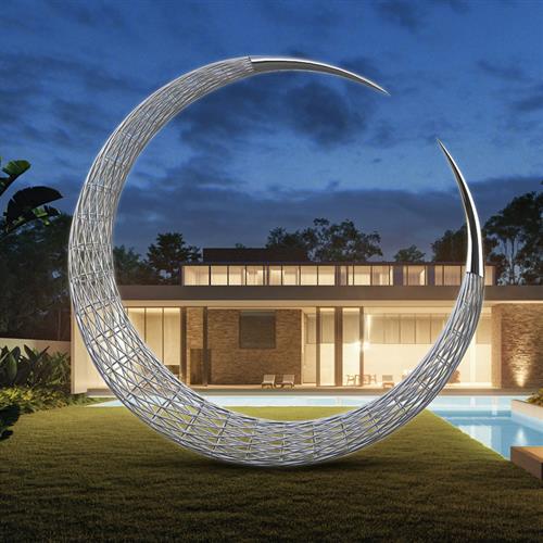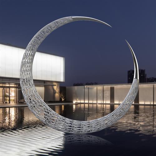 大型不锈钢圆环雕塑金属镂空月亮摆件园林售楼部房产酒店水景装饰