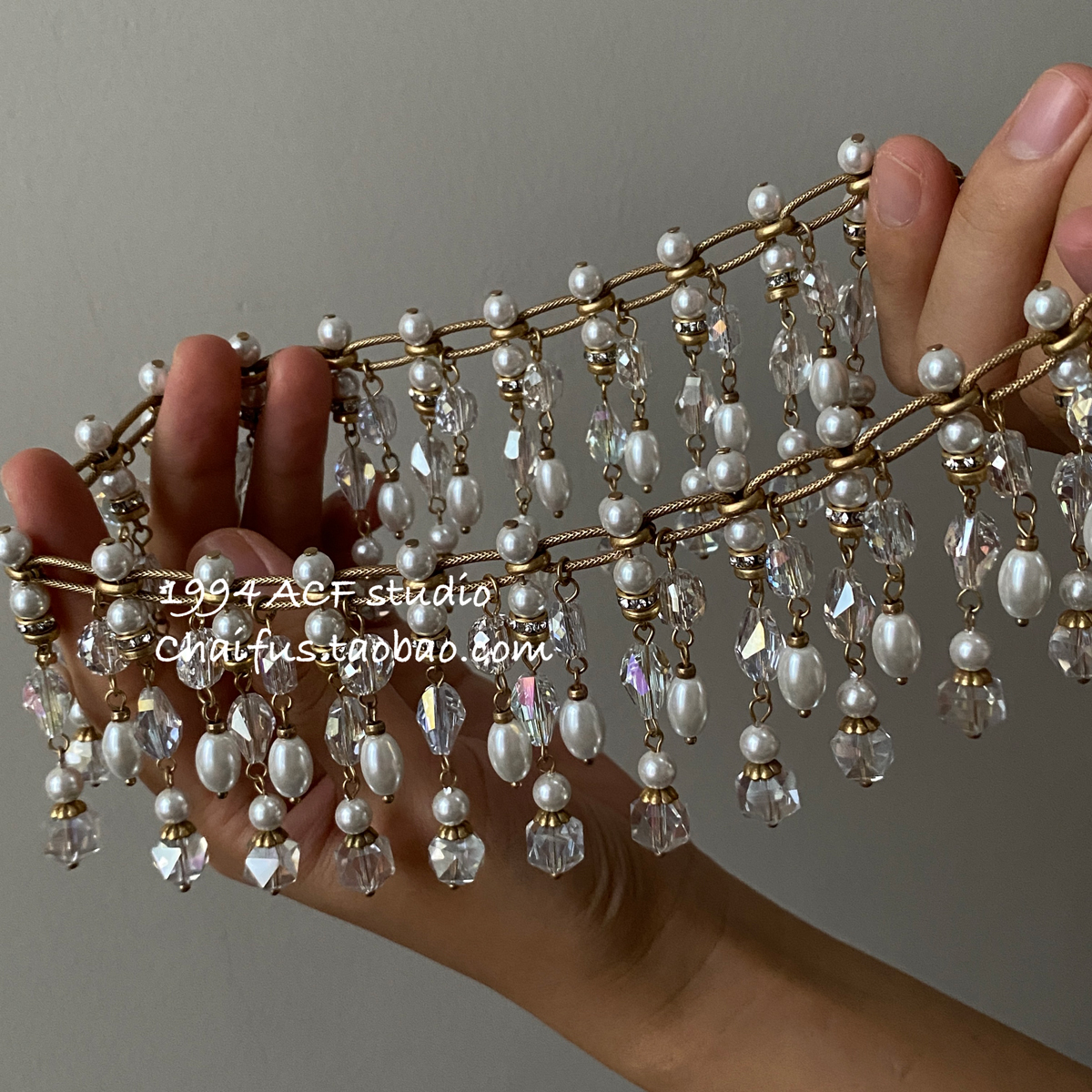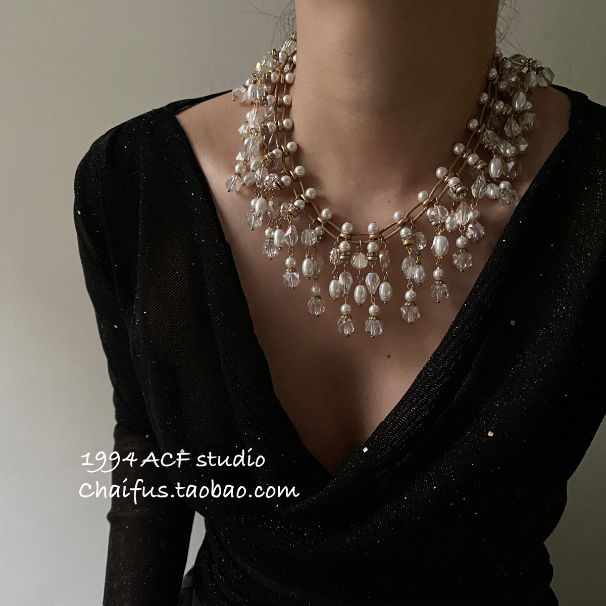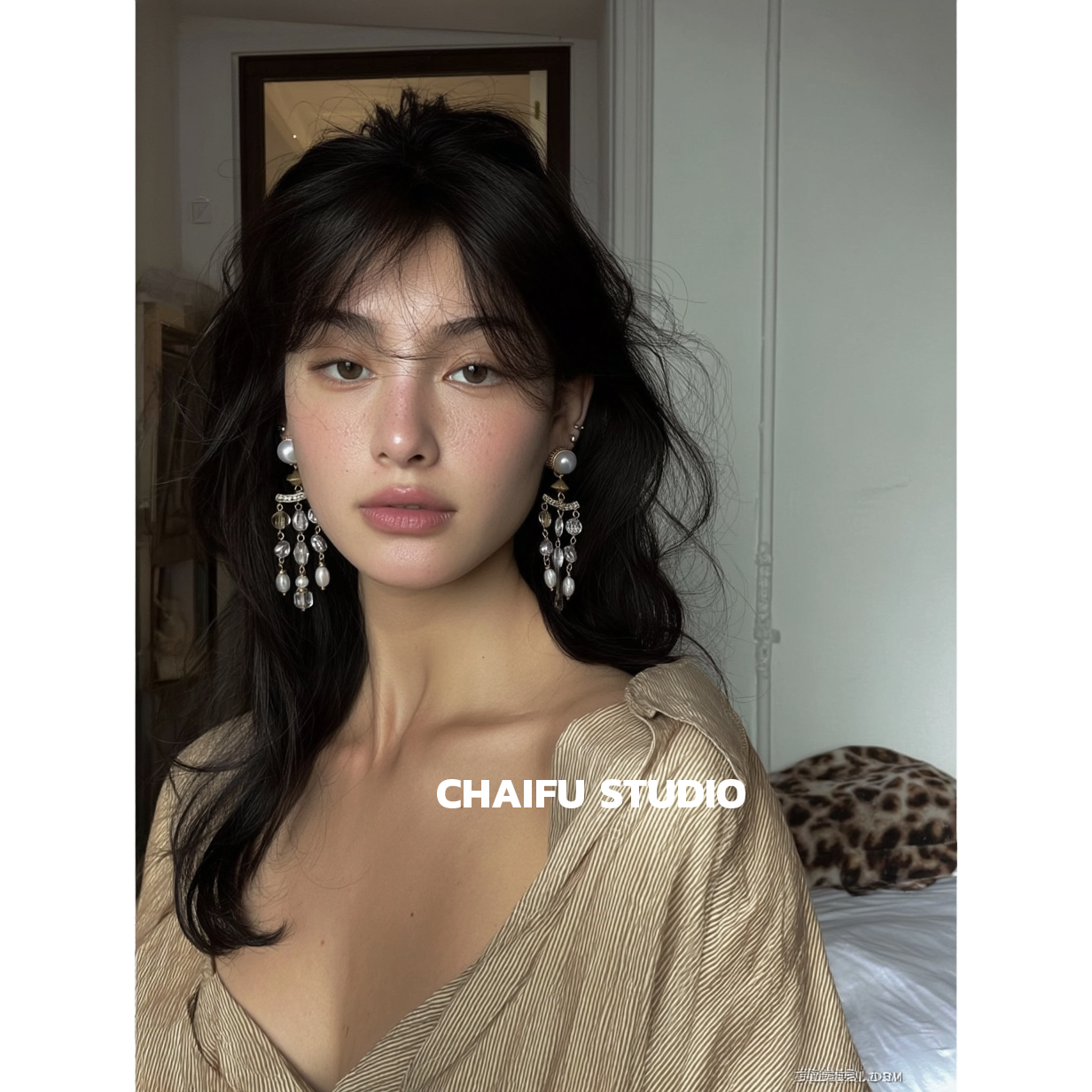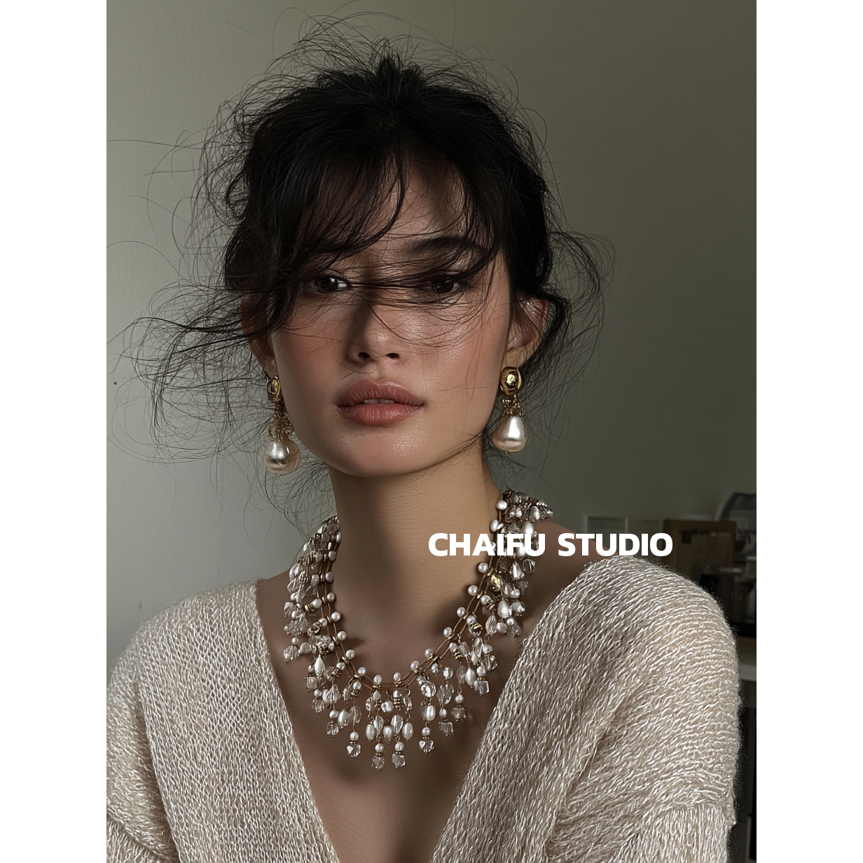 柴夫工作室/X657 西洋古董优雅珍珠琉璃耳钉宫廷贵气流苏毛衣项链