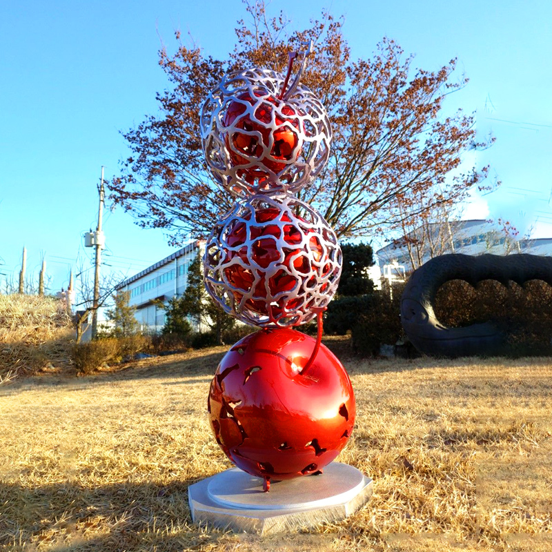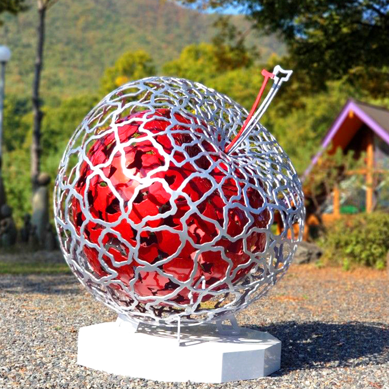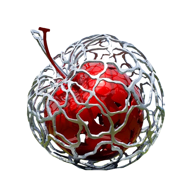 不锈钢苹果雕塑定制户外大型镂空水果摆件植物园景区景观铁艺厂家