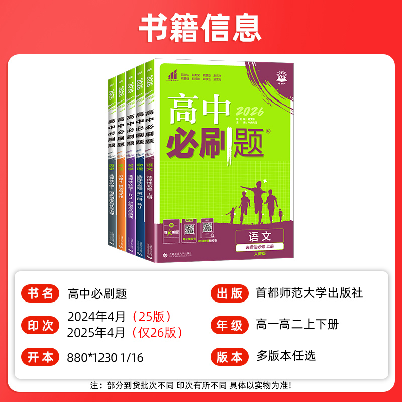 2026版高中必刷题数学物理化学生物必修一1二2三人教AB版北师大湘苏语文英语政治历史地理上下册新教材选择性练习教辅资料狂k重点