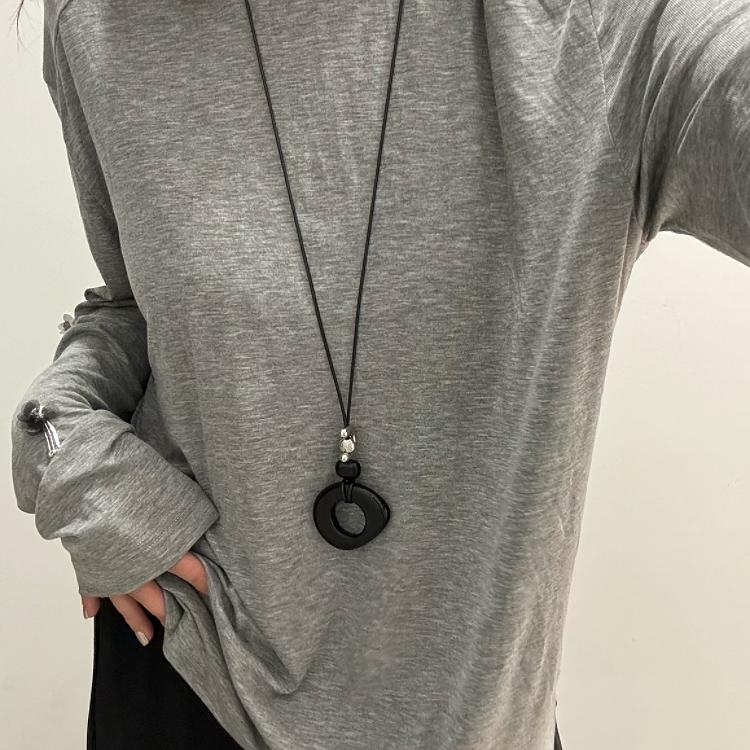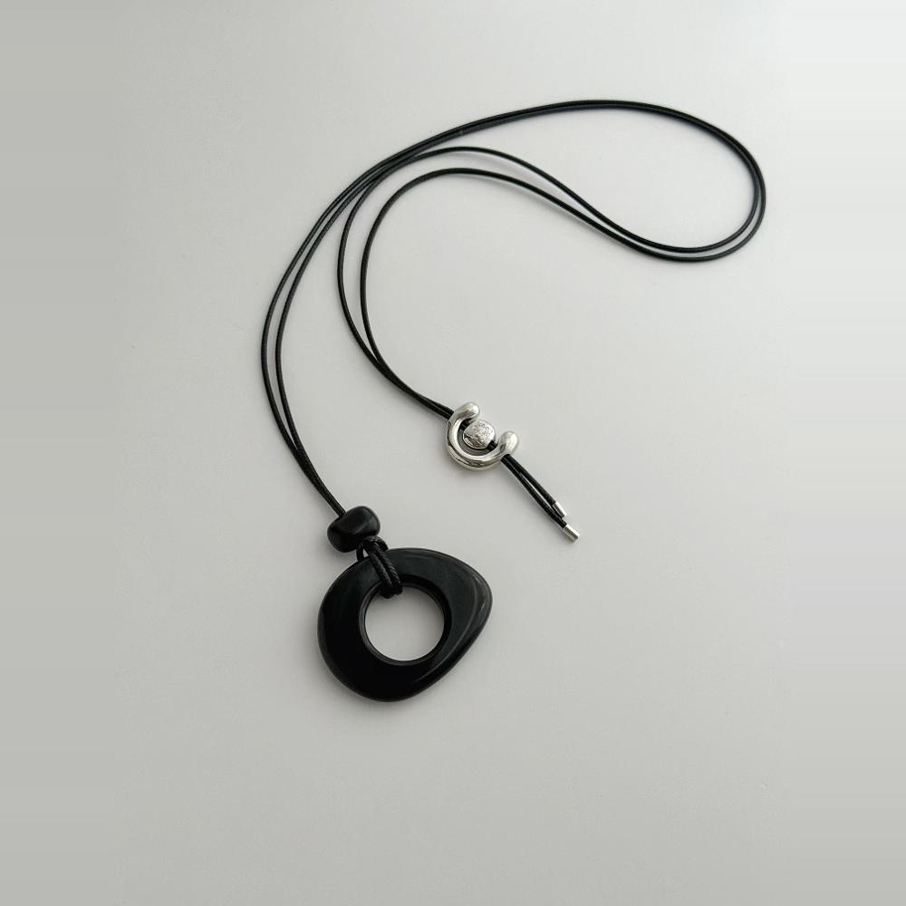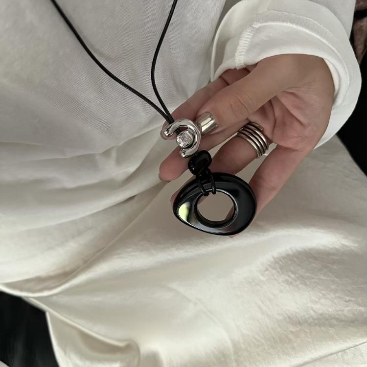 重工小众设计规则黑曜石定制镀银可调节小马扣细绳项链毛衣链秋冬