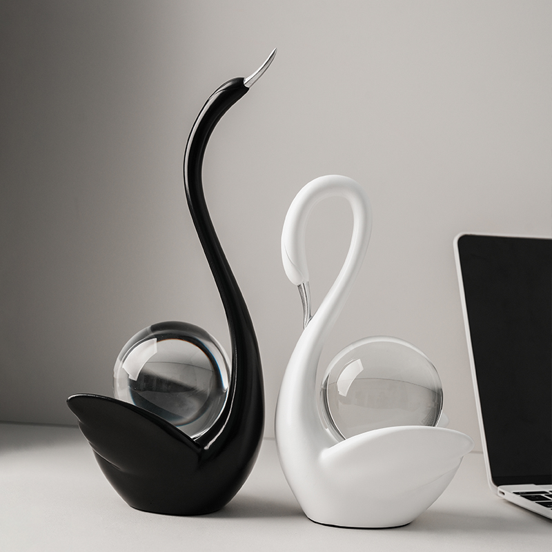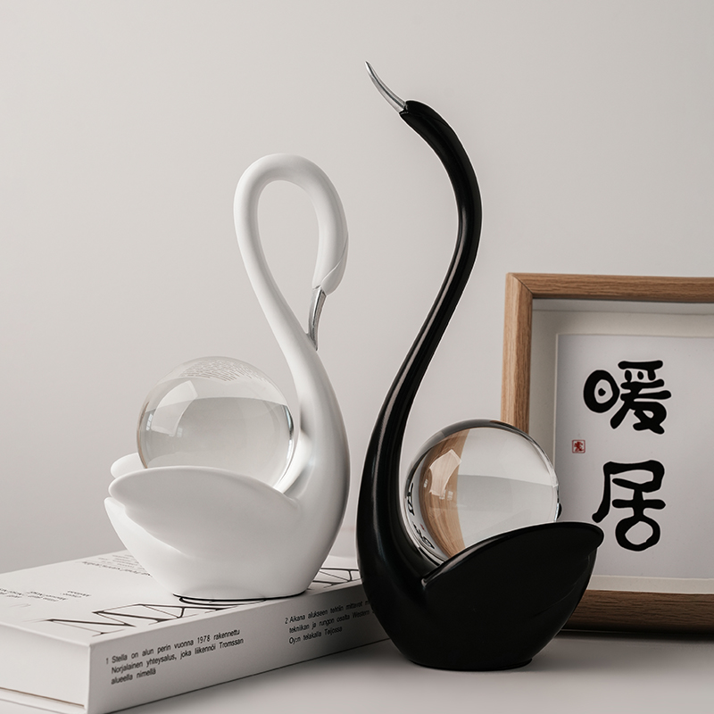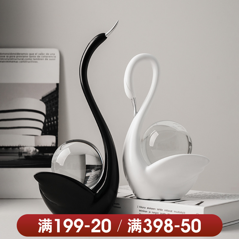 速发水晶球情侣天鹅摆件轻奢家居玄关客厅酒柜电视柜装饰品