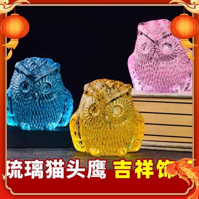 琉璃摆件水晶猫头鹰客厅卧室车载装饰品孩子生日礼物玩具小动物