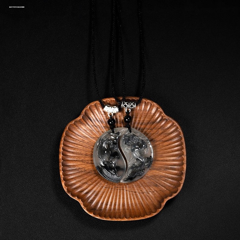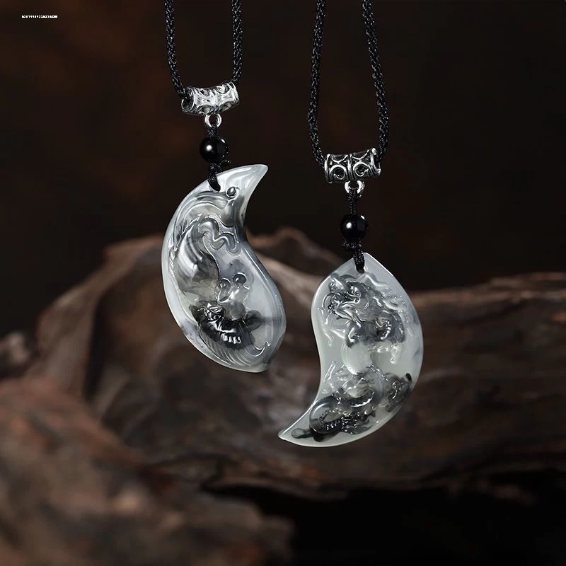 仿岫玉水墨龙凤扣对牌情侣款龙凤玉佩挂件吊坠龙凤呈祥项链玉牌