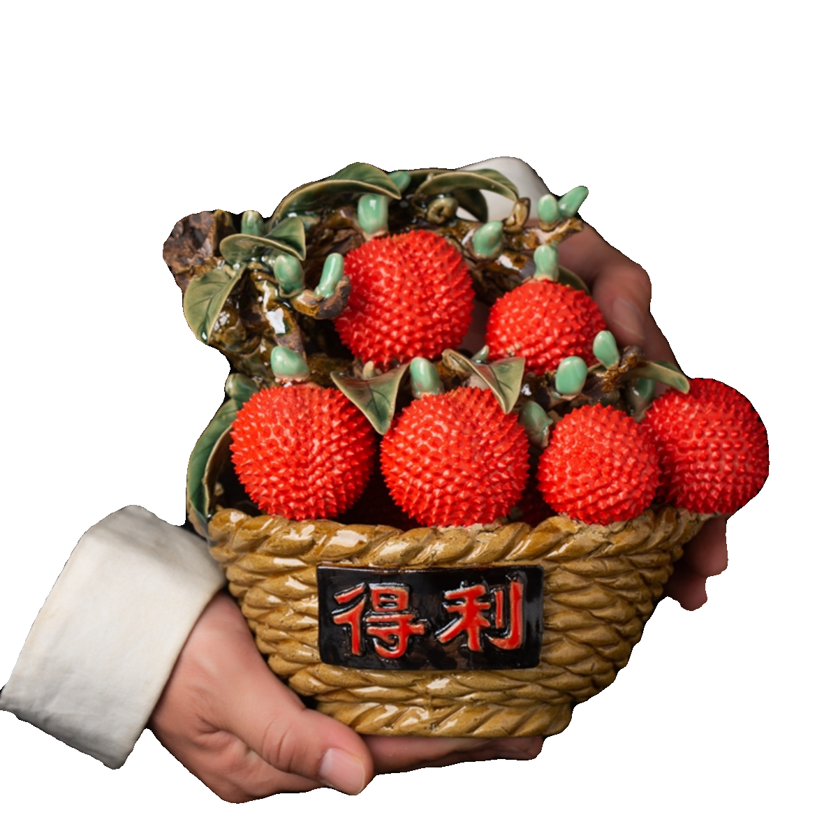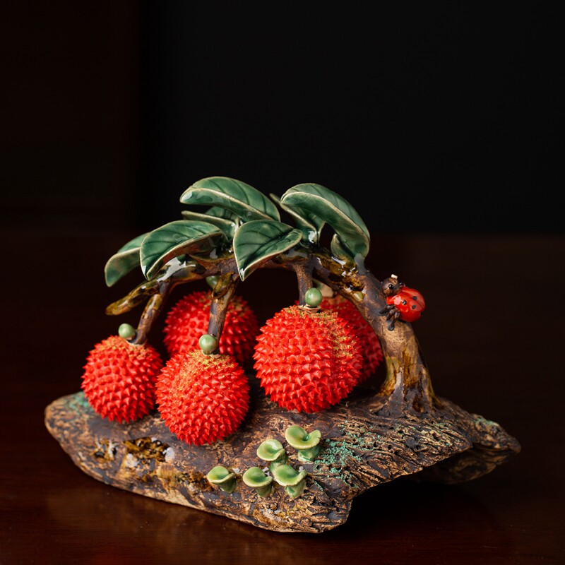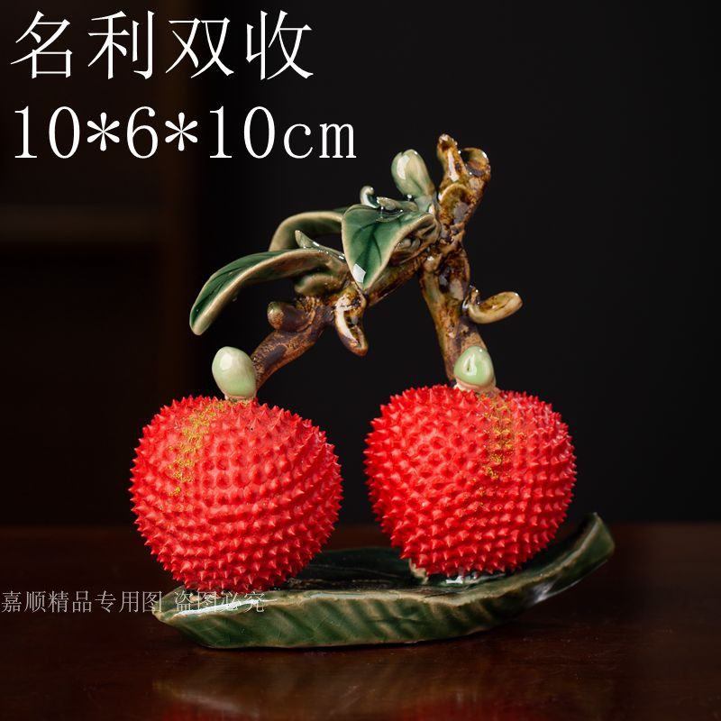 手工陶瓷客厅荔枝水果大吉大利开业礼品中式家装工艺品办公桌摆件