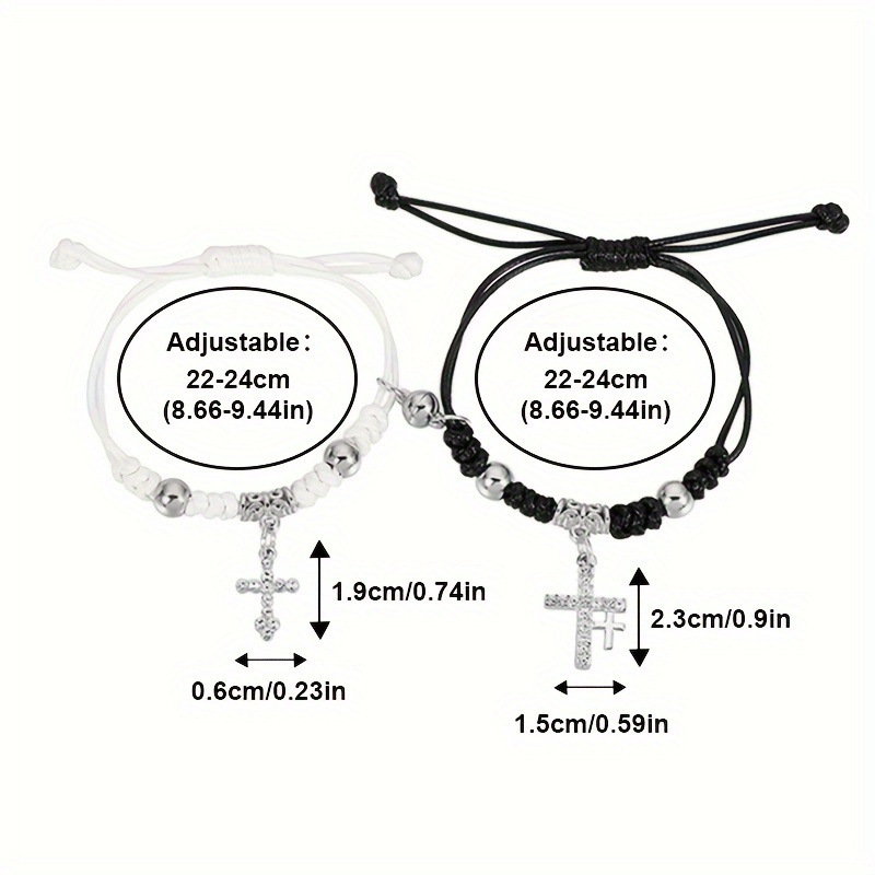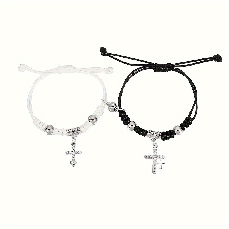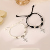 欧美时尚简约创意ins黑白配情侣十字架手工编织绳子手链套装