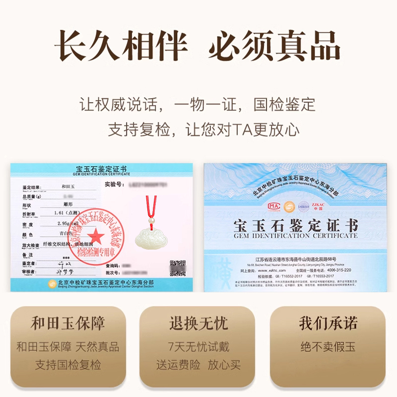 天然保真和田玉晴水平安如意锁吊坠羊脂白玉石籽料玉坠挂件送老婆