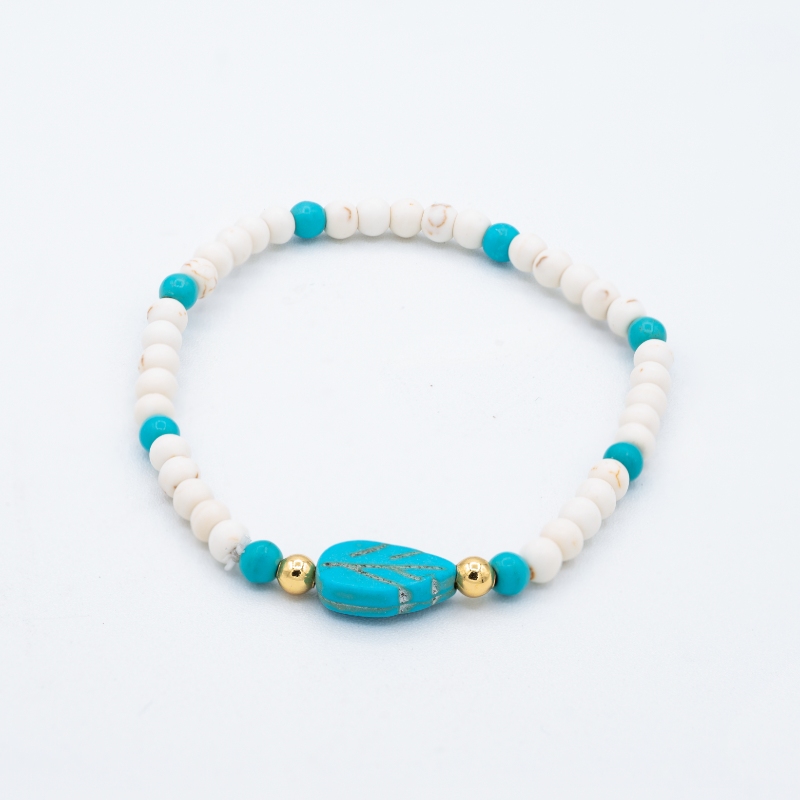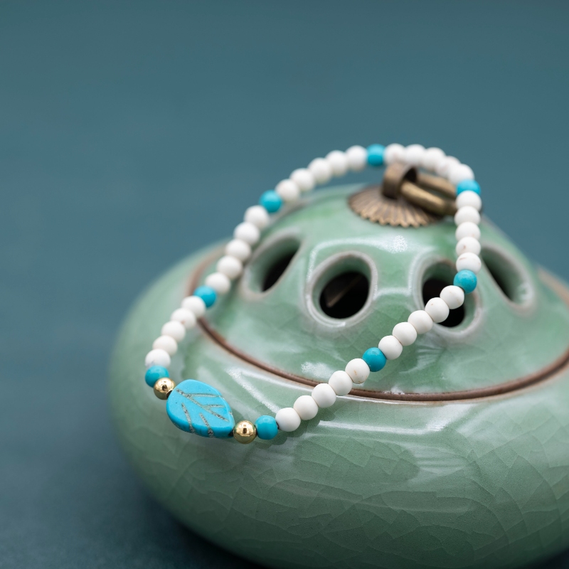 蓝白撞色单圈小珠手串叠带彩色多巴胺树叶款甜美活泼饰品闺蜜礼物