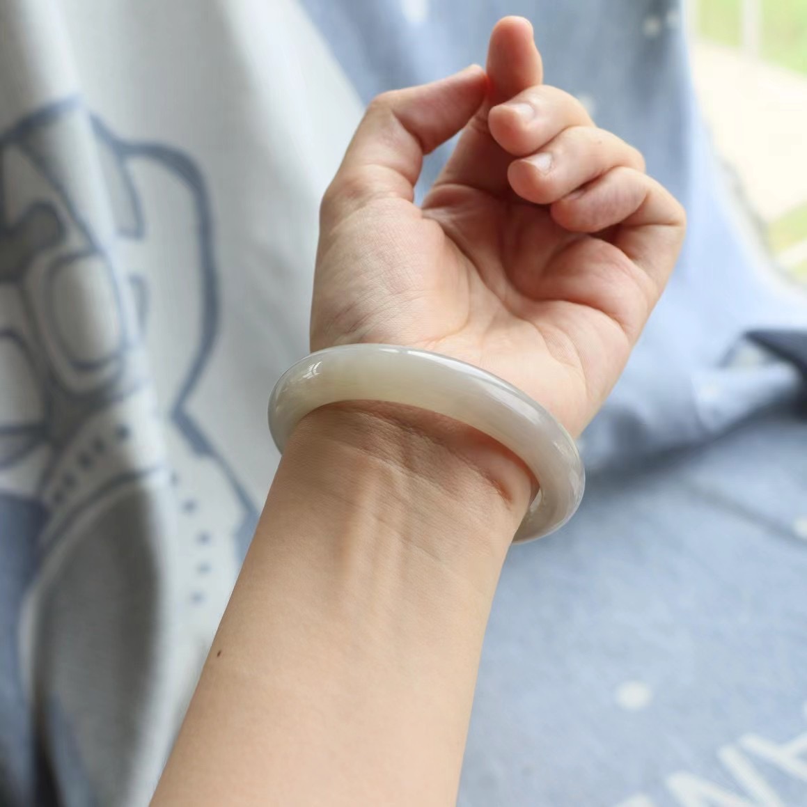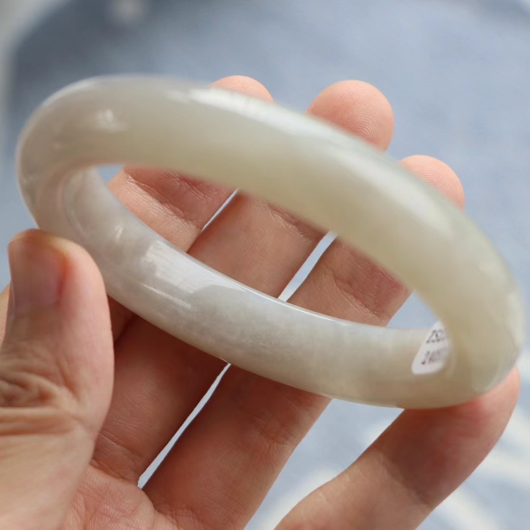 保真天然和田玉手镯57圈口证书8124053和田玉淡紫色烟灰色烟紫色