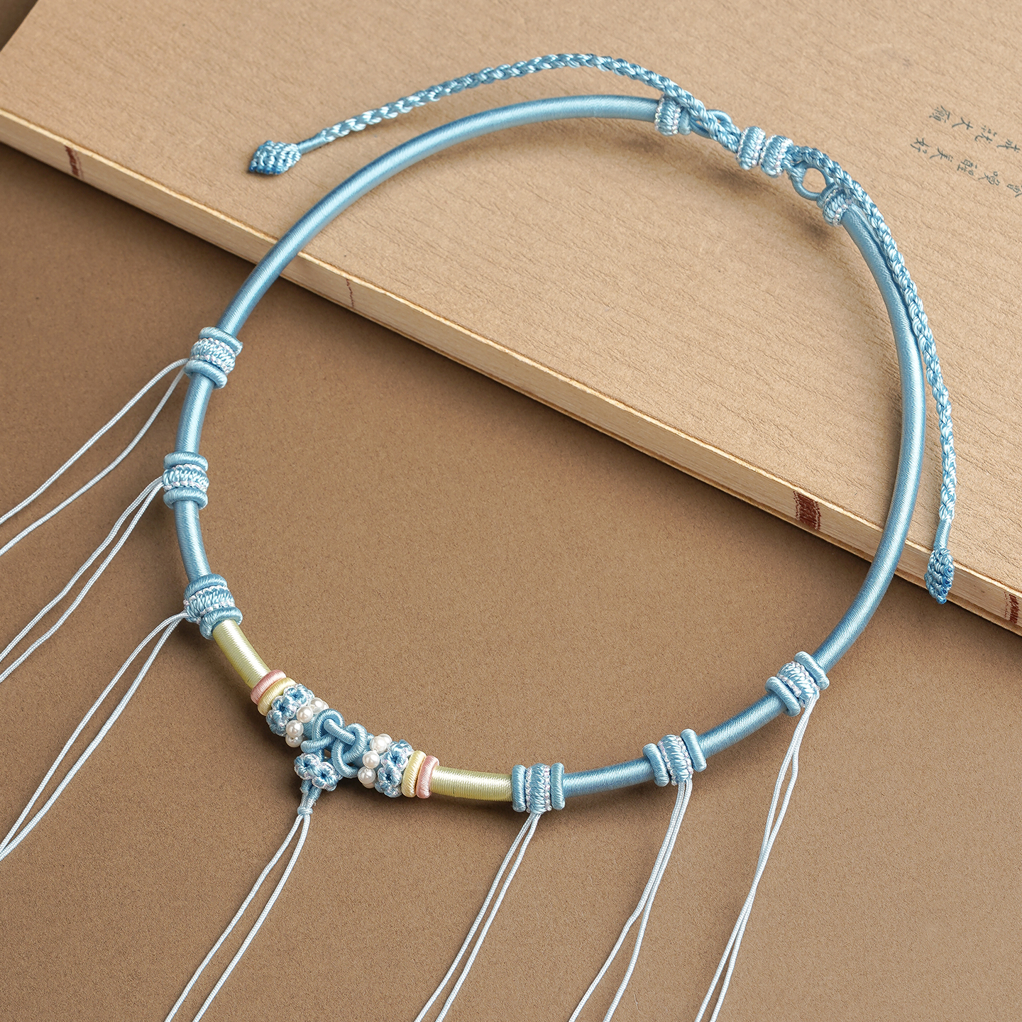 手工吊坠挂绳古风项圈多挂件款可调节宝宝周岁项链绳金锁玉石配绳