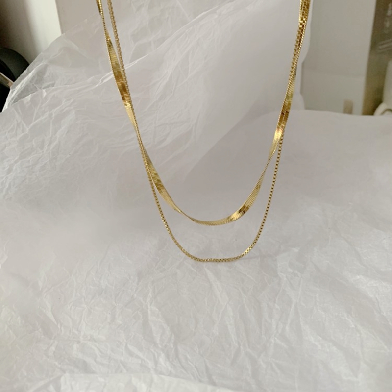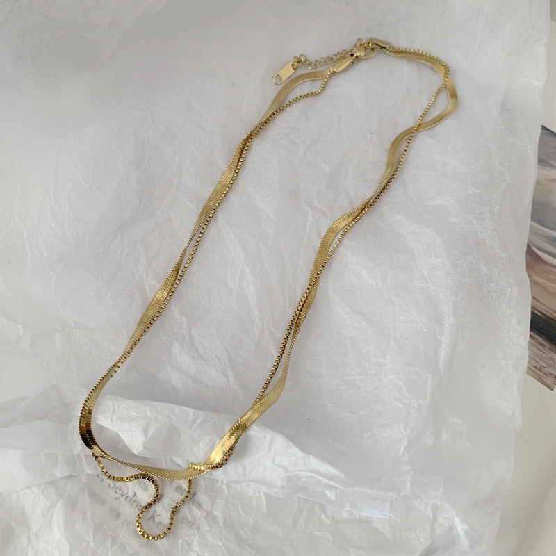 钛钢不掉色INS潮小众金色双层叠带蛇骨链高级感网红项链女锁骨链