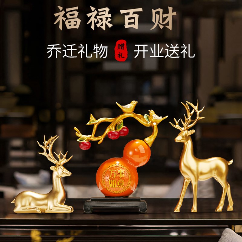 招财福鹿葫芦摆件家居轻奢客厅电视柜玄关酒柜装饰品高档乔迁礼物