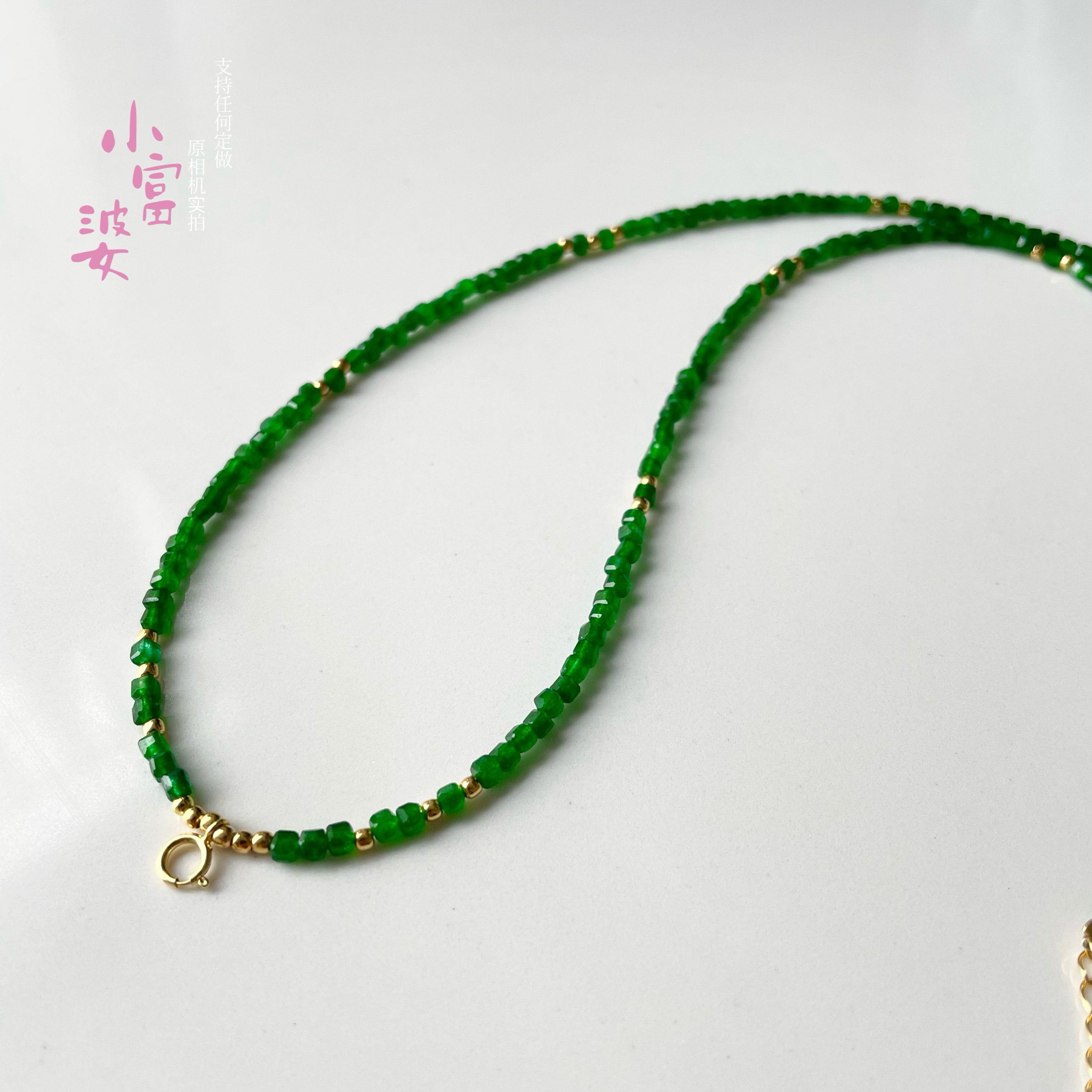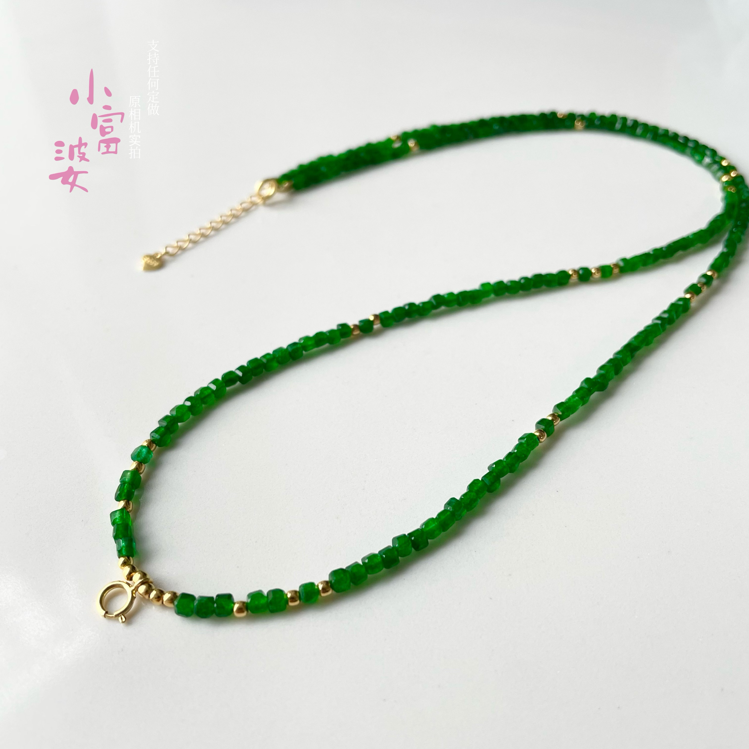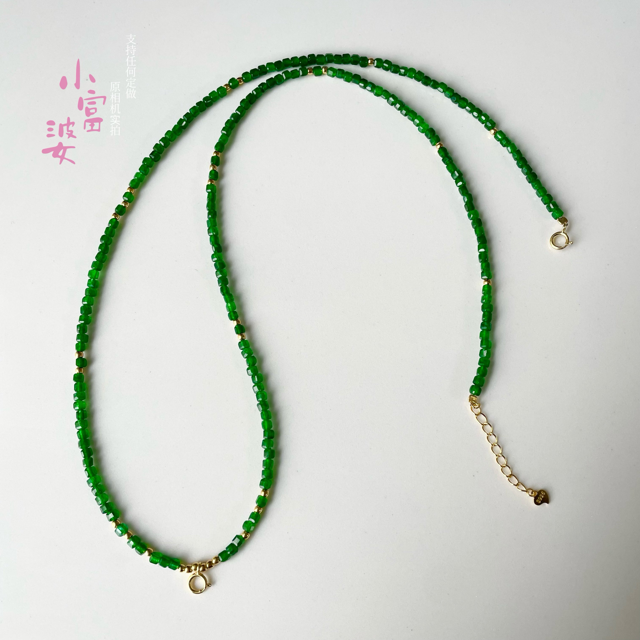 显白祖母绿色新中式风格个性佛牌珠链定制挂绳链长款项链方糖镀金