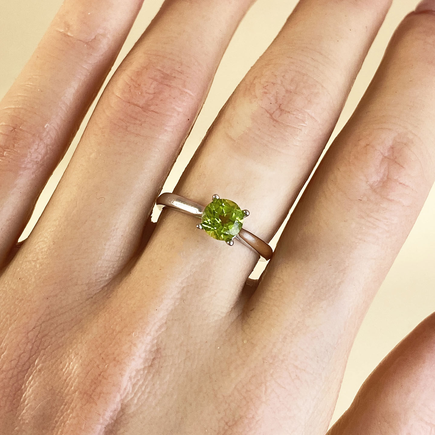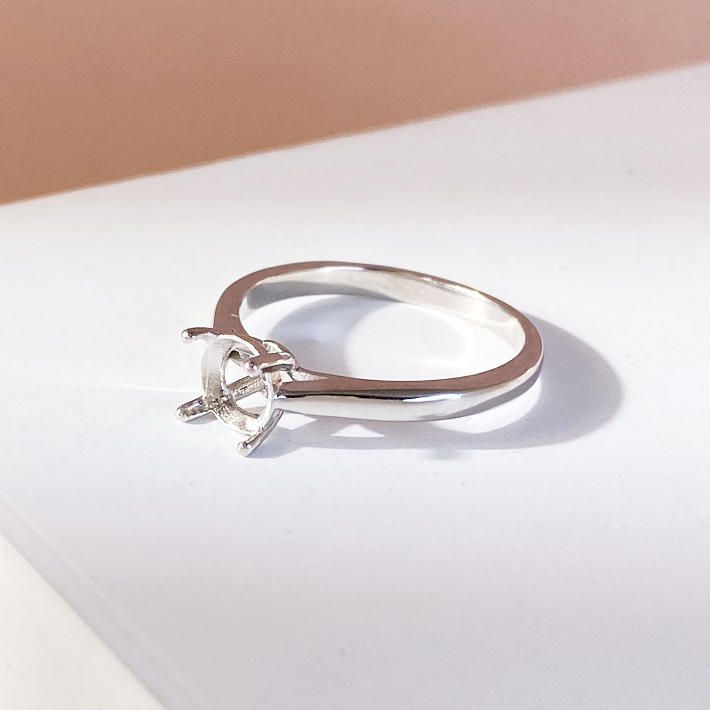 S925银简单四爪款戒指空托镶嵌尖底刻面宝石圆形6mm女款闭口戒指