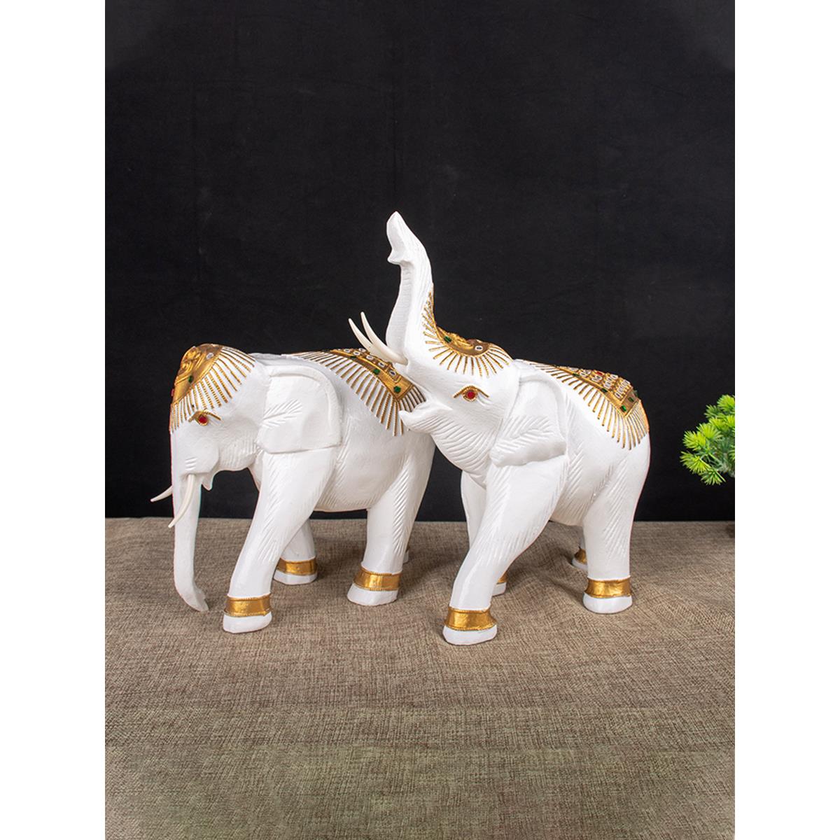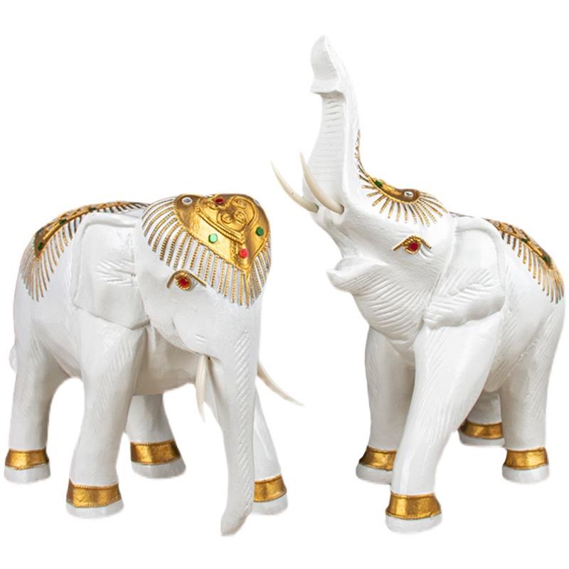 泰国进口实木手工雕刻白色吉象摆件客厅东南亚桌面木制大象装饰品