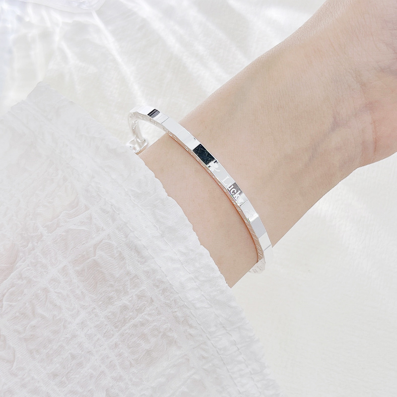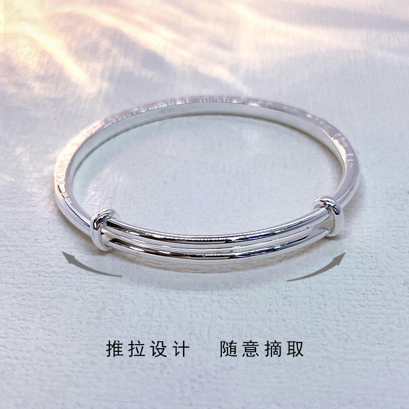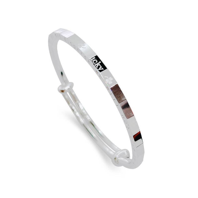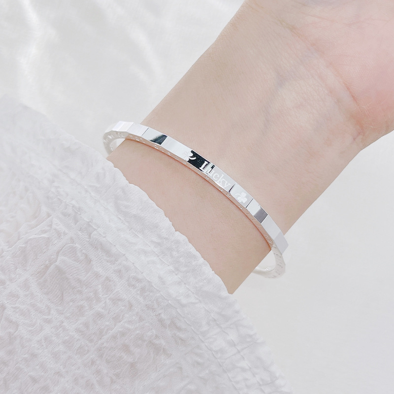 足银999手镯匠心简约四叶草幸运Lucky银手镯时尚手链百搭银手饰
