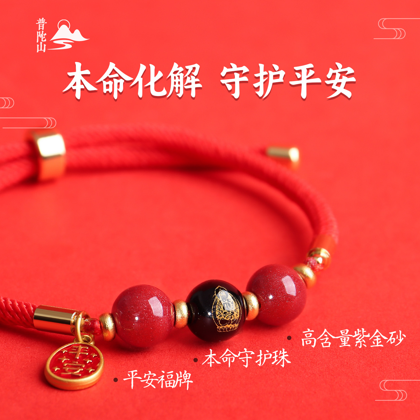 普陀山文创2025蛇年本命年生肖红绳手链护身符转运珠红手绳编织绳