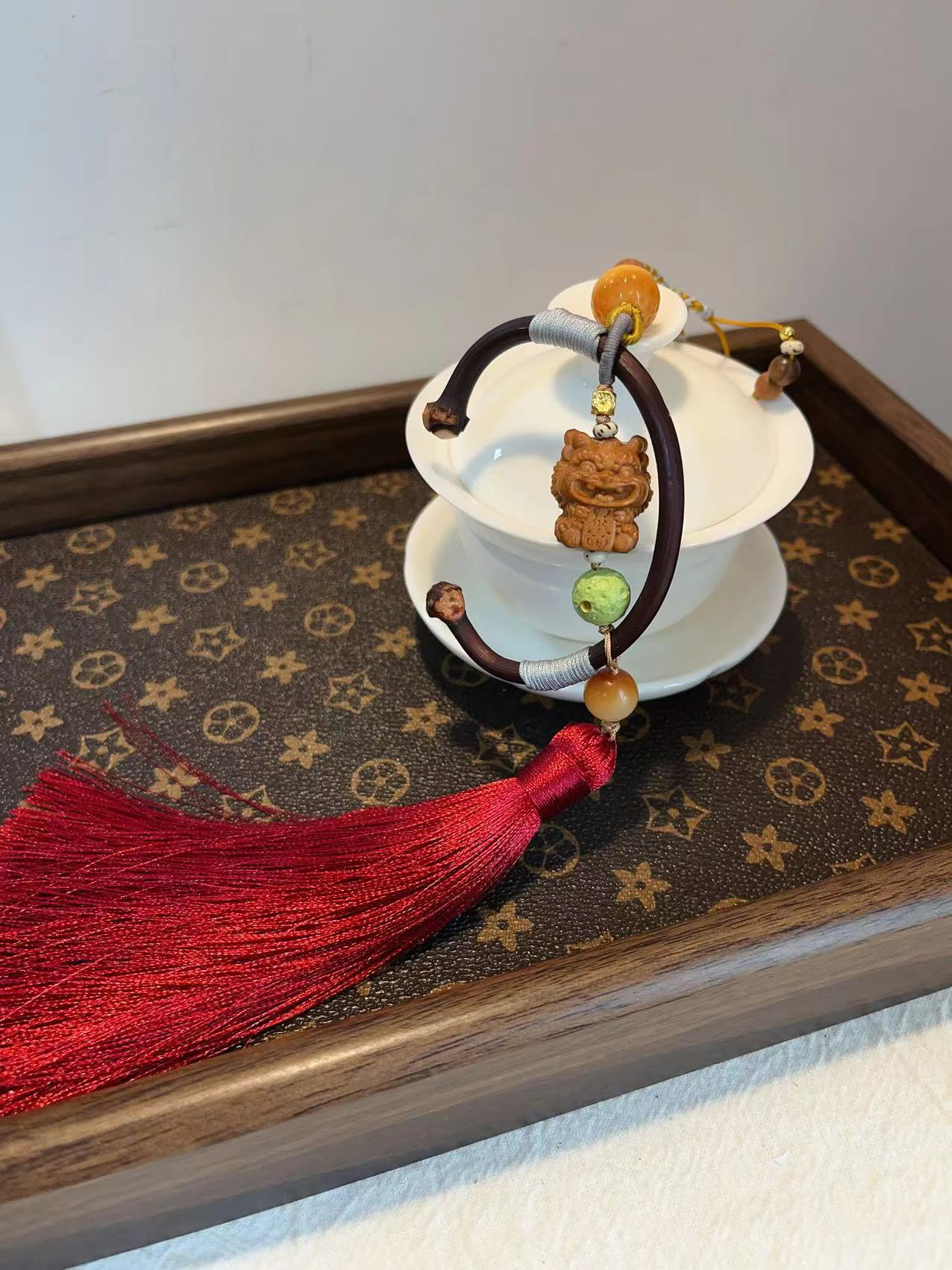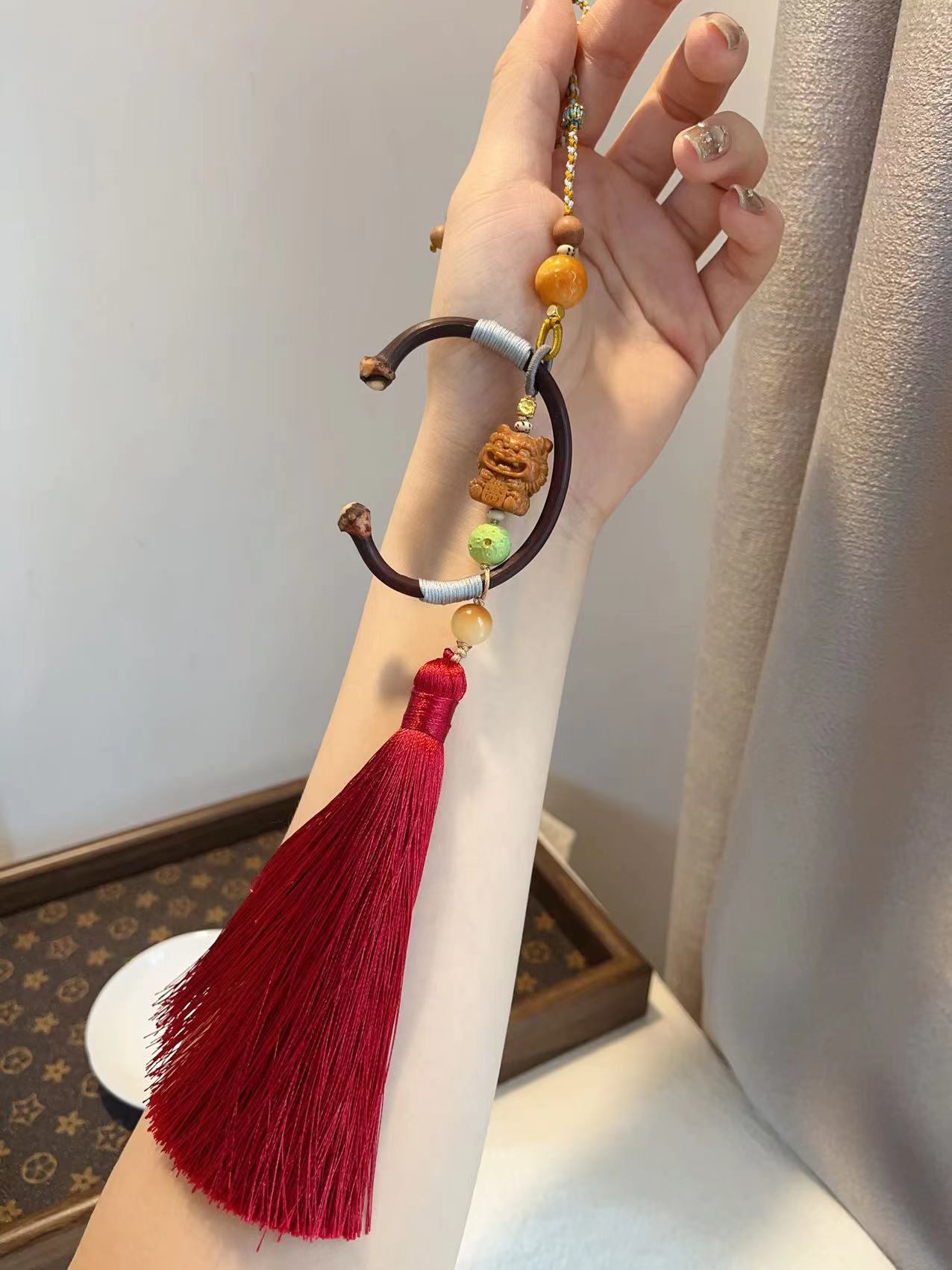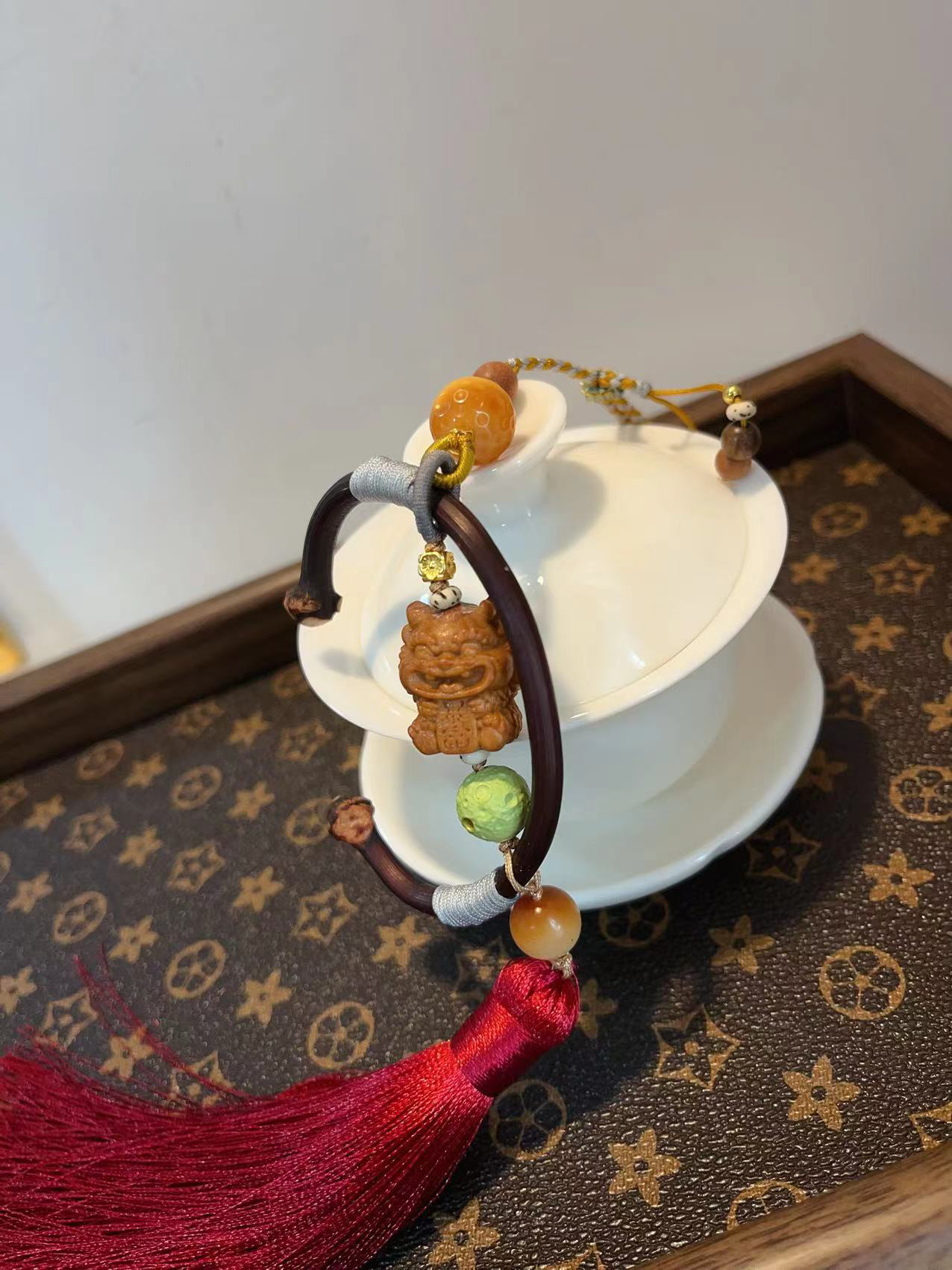原创鸡血藤吞金兽挂件配缅黄玉菜籽绿星球文玩饰品佛珠挂饰