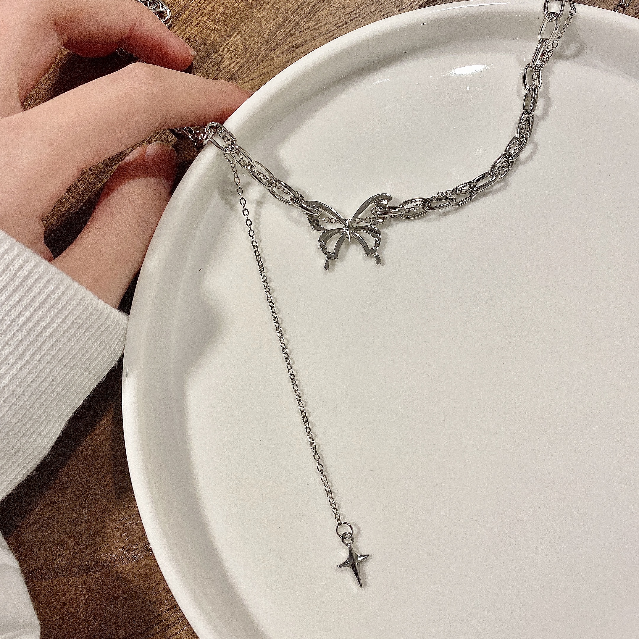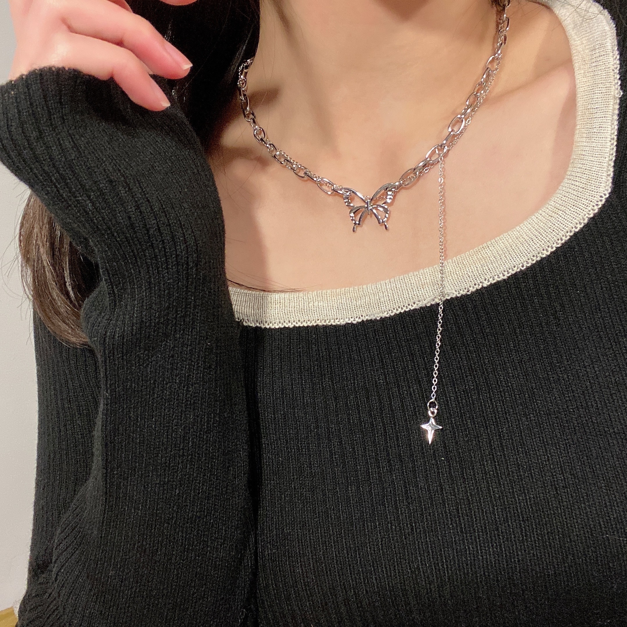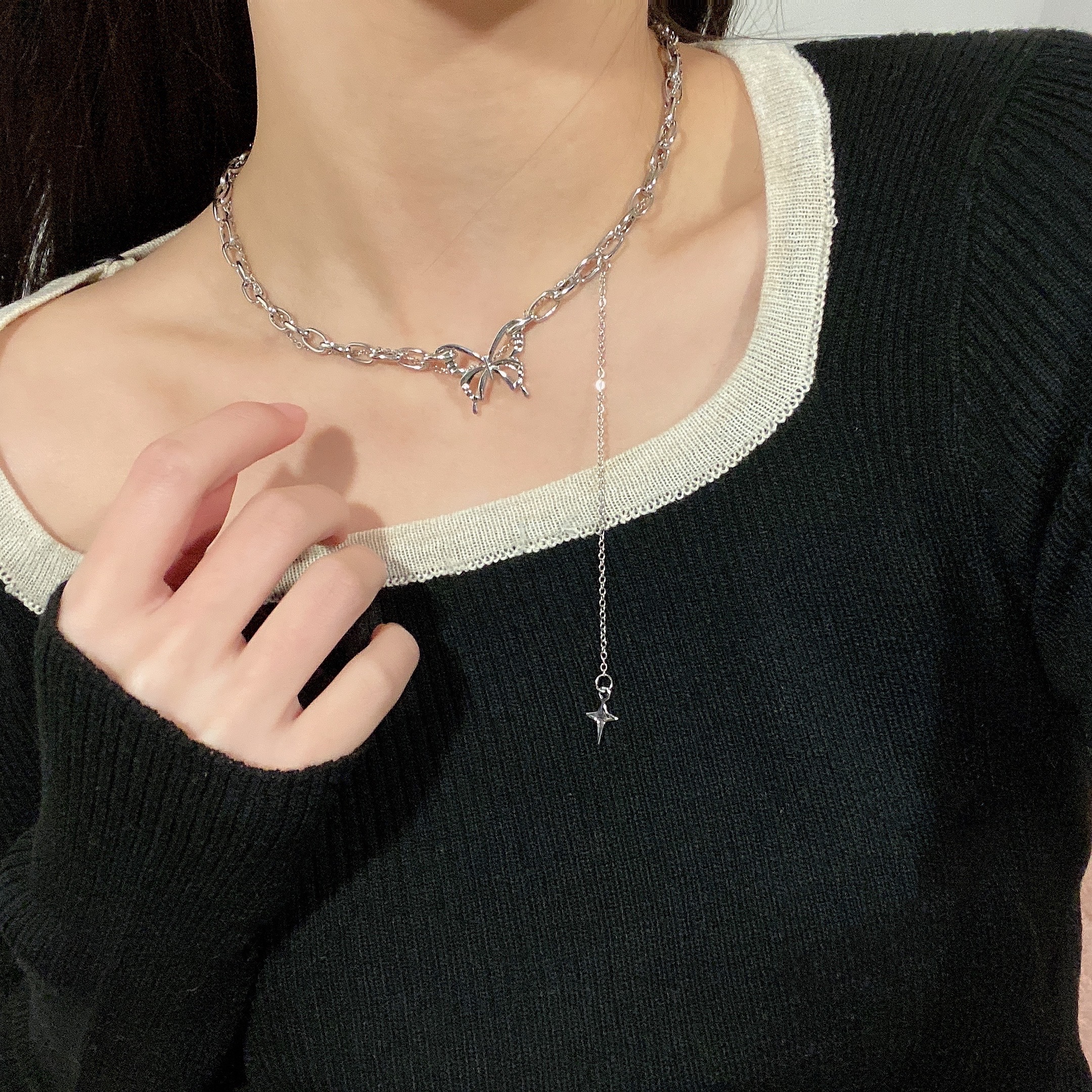 复古蝴蝶卫衣项链女ins嘻哈冷淡风夸张气质星星流苏锁骨链毛衣链