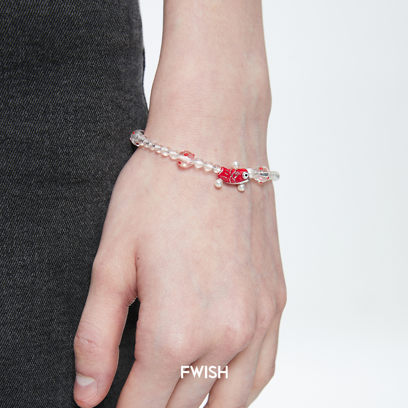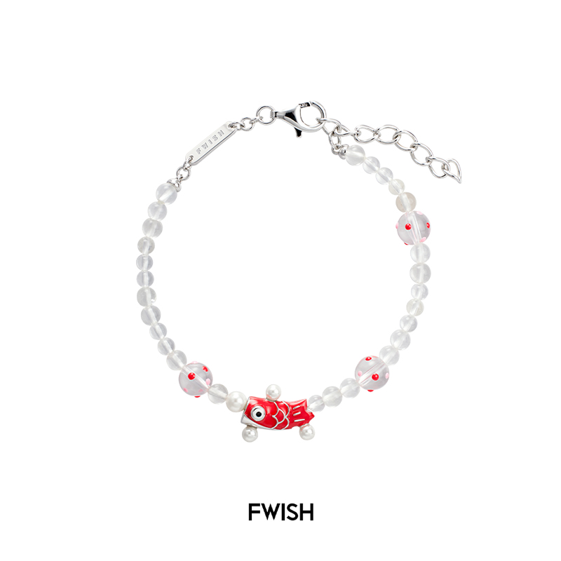 FWISH 锦鲤珍珠手链925银原创设计师小众造型感趣味个性红色礼物1