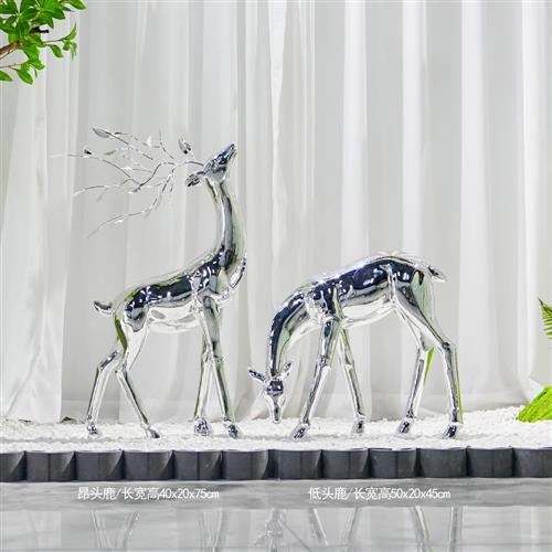 鹿雕塑摆件仿铜不锈钢玻璃钢梅花鹿户外公园动物园林景观小品装饰