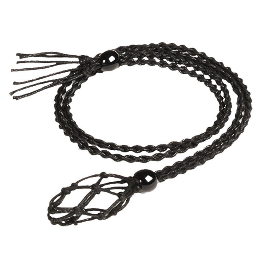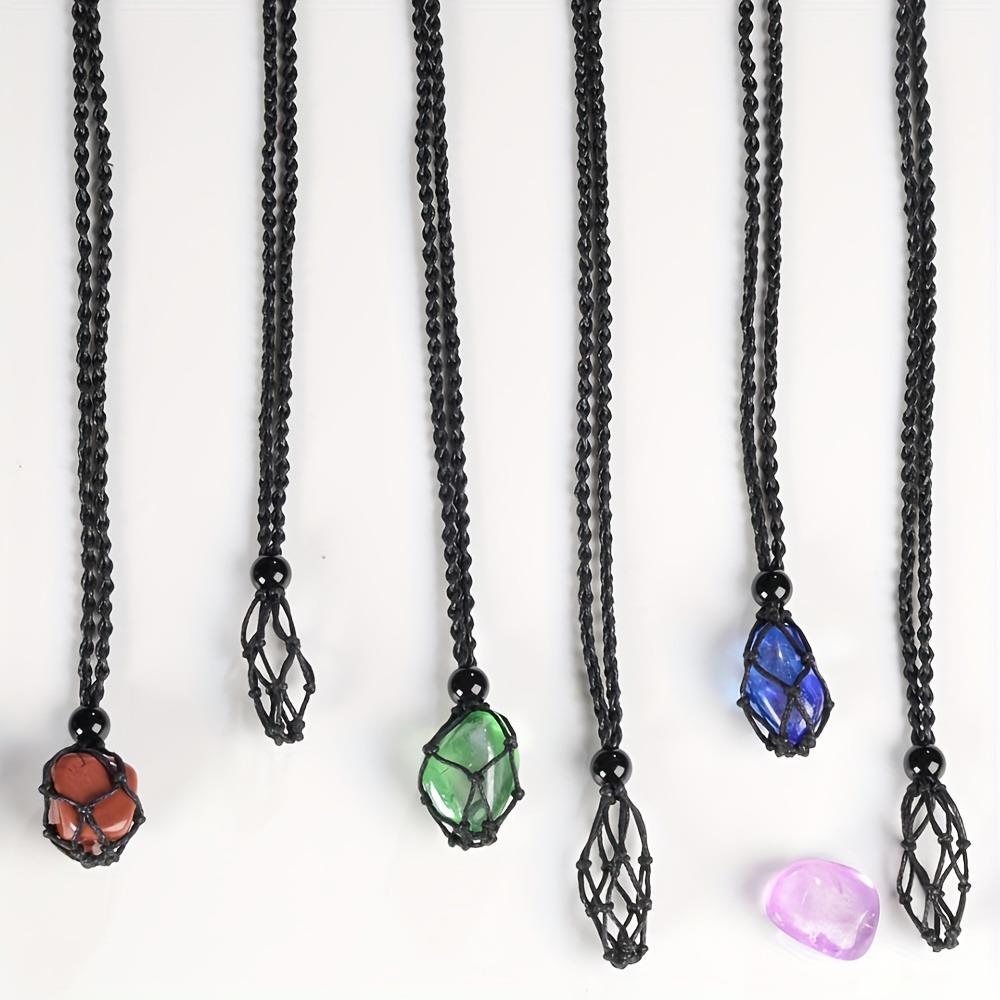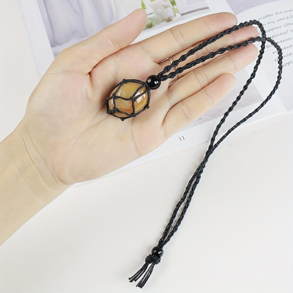 2025亚马逊水晶原石天然石黑色网兜编织项链可调节原石网兜毛衣链