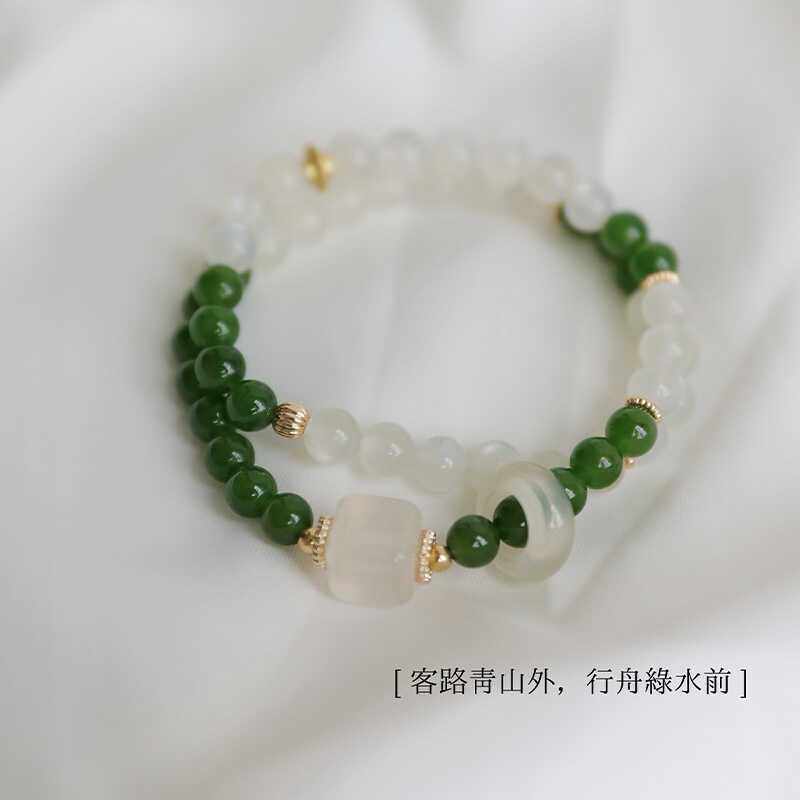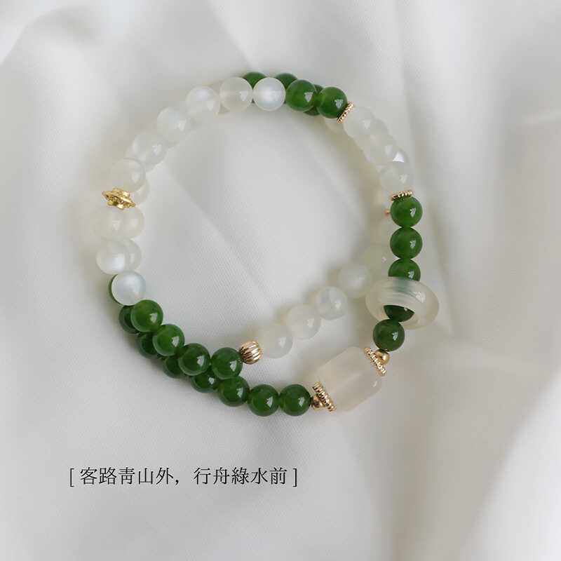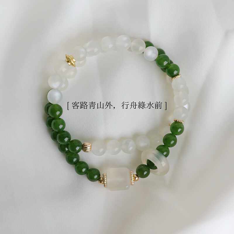 碧玉手串白月光石手链新中式国风绿色女生多圈叠戴情绪稳定串珠女
