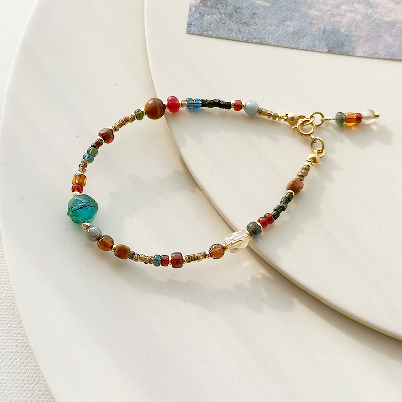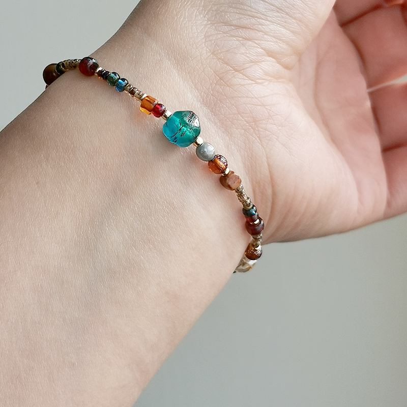 蓝色海洋之心|轻复古进口捷克琉璃手作手链串珠礼物首饰手串