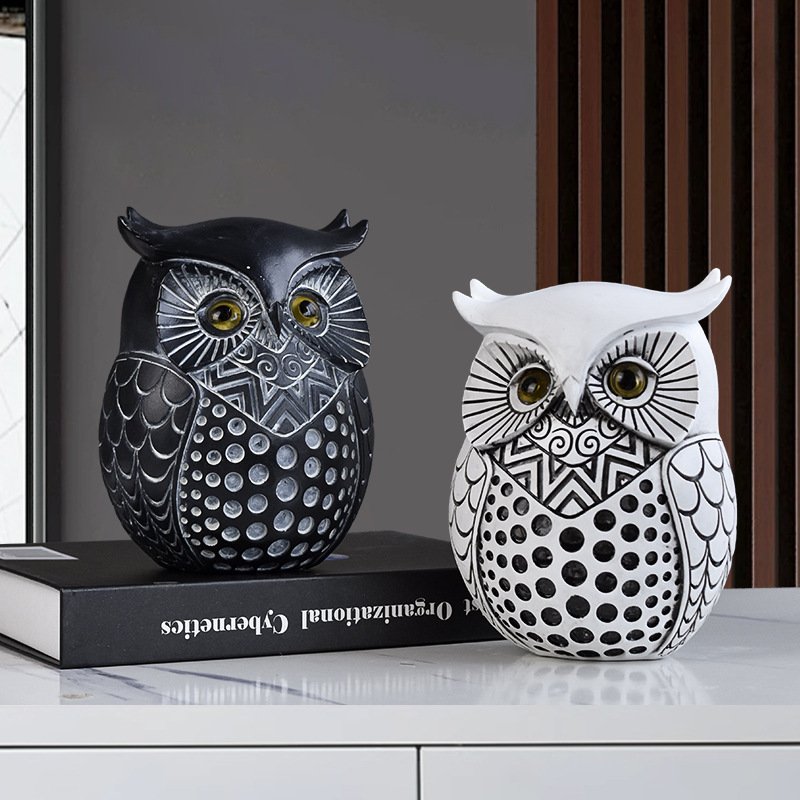 现代简约可爱猫头鹰树脂工艺品摆件家居客厅办公电视柜桌面装饰品