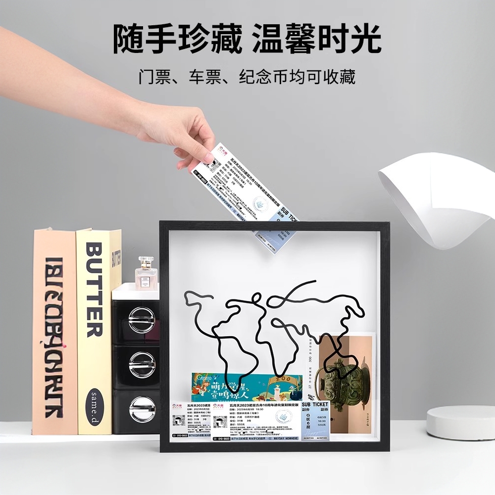 时光碎片票根收纳相框演唱会门票旅行明信片地图机票展示票据挂墙