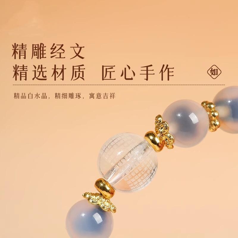 糖心玛瑙手串天然白水晶上岸生日礼物护身符玛瑙心经转运珠手链