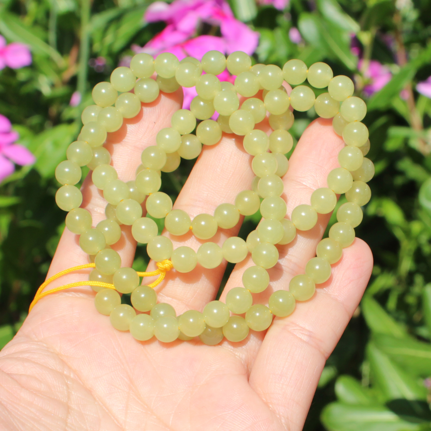 抢到赚到方言和田玉新疆高脂糯黄口料6mm黄色名品黄玉项链手串A6