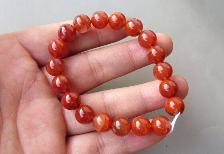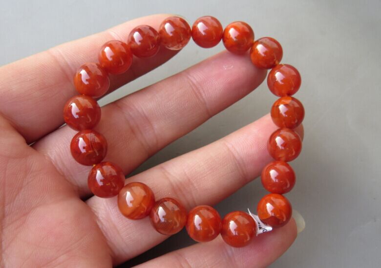 27.38克正品天然满肉柿子红南红玛瑙手链 凉山柿子红南红玛瑙10mm