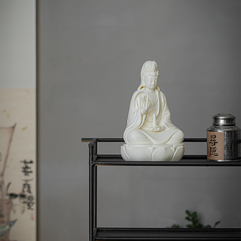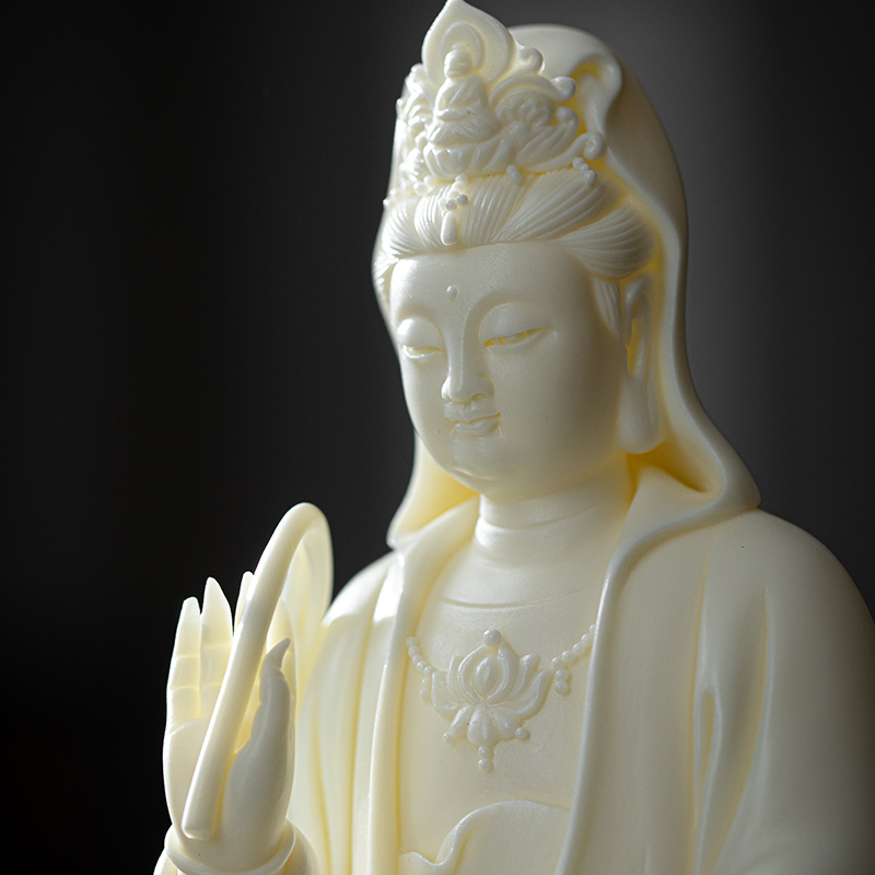 久造德化陶瓷杨柳观音佛像摆件观世音菩萨家用供奉白瓷工艺品送礼
