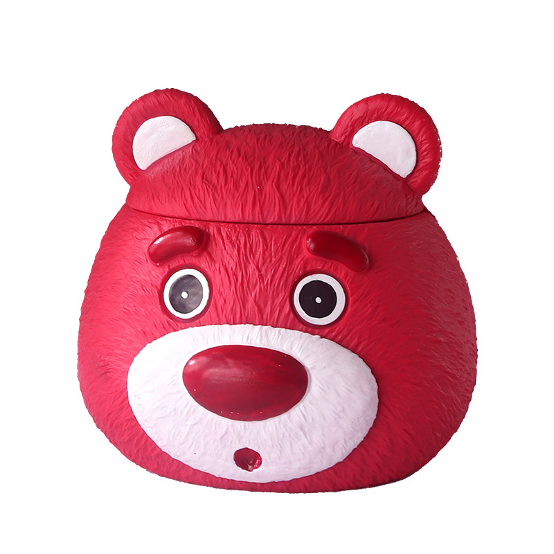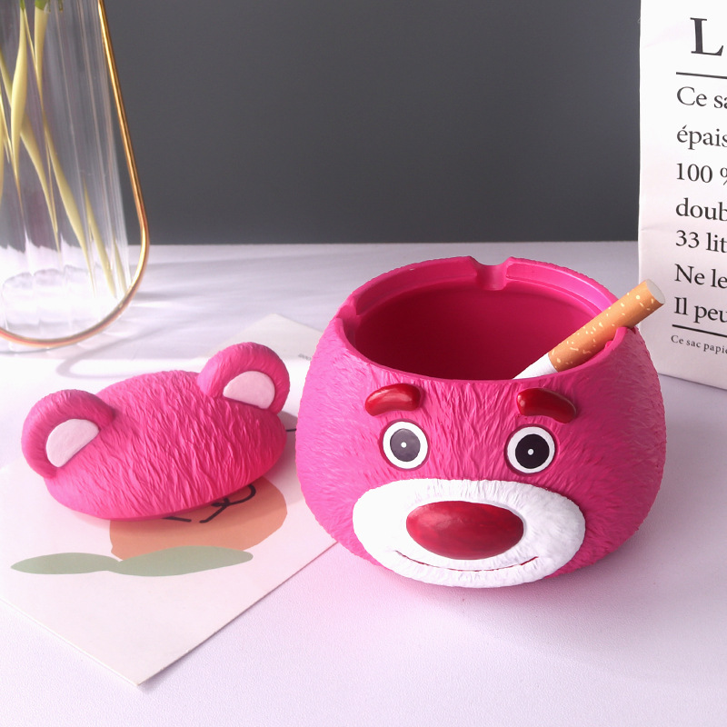 卡通可爱草莓熊粉系带盖烟灰缸个性办公室防风飞灰客厅烟盅
