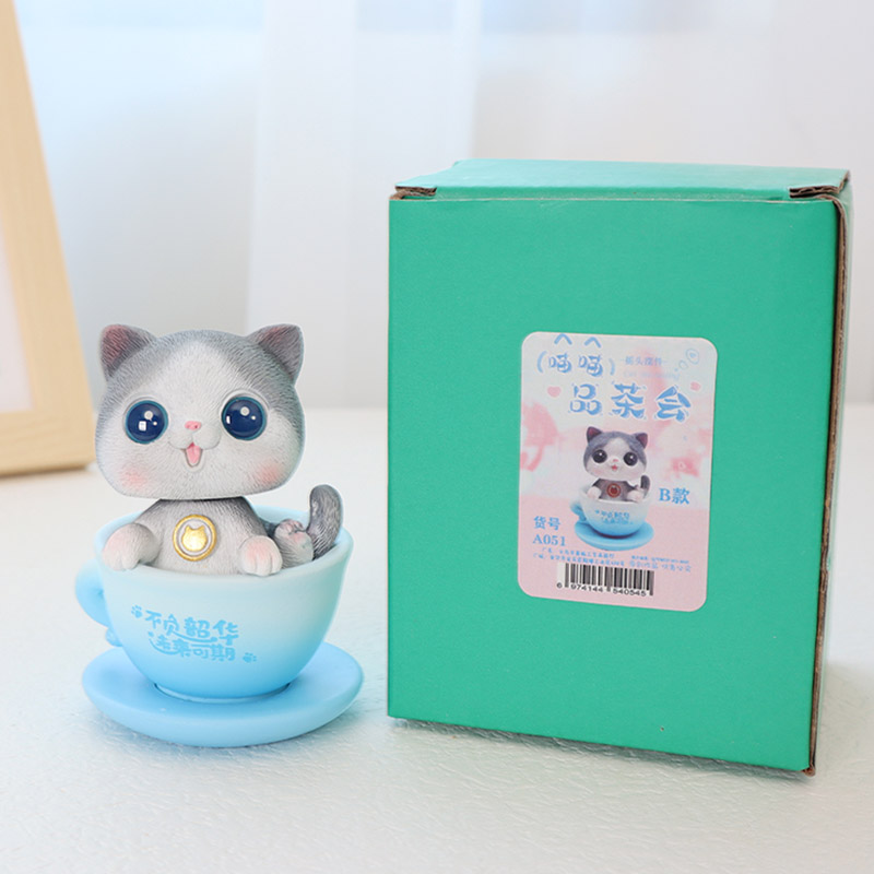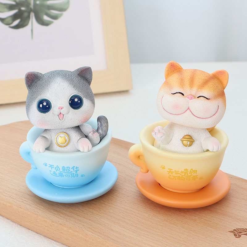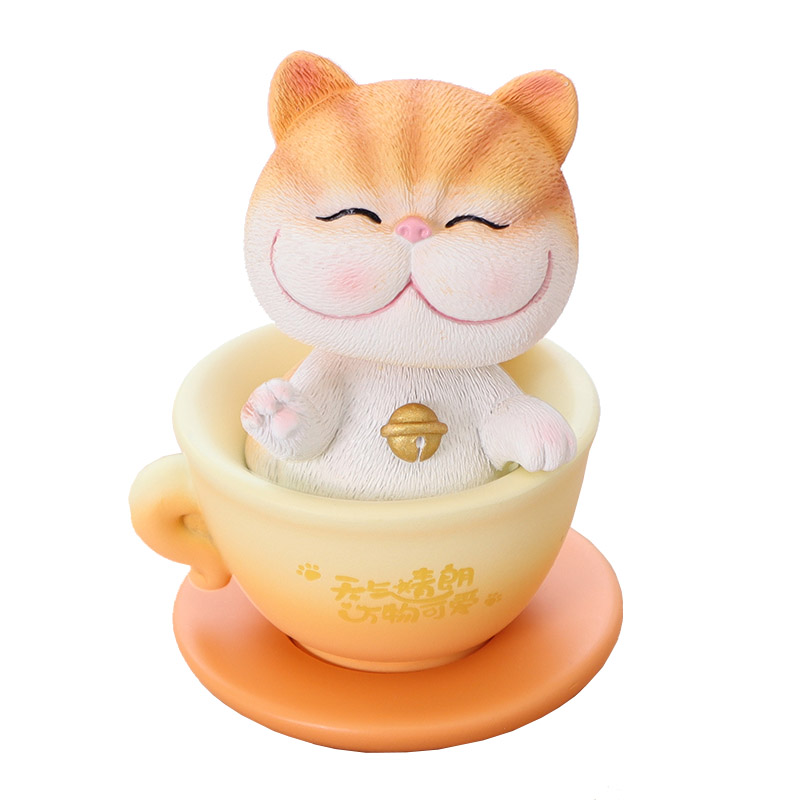 茶杯小猫咪摆件可爱摇头加菲英短布偶猫桌面装饰玩偶汽车内饰礼物