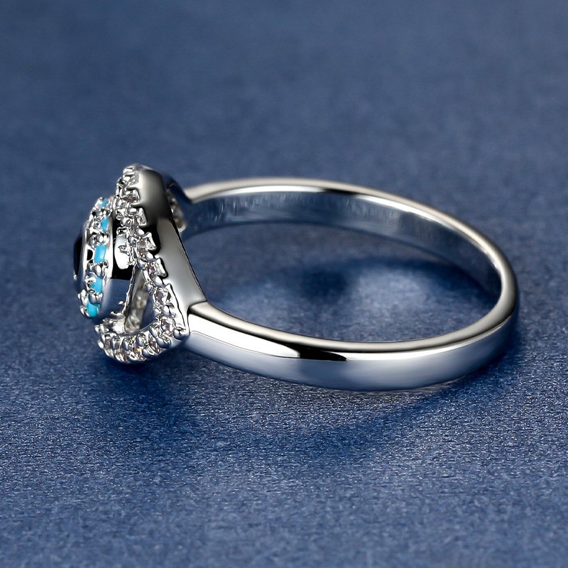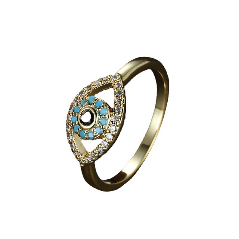 新款跨境恶魔之眼蓝色眼睛镶嵌戒指时尚女款简约镶钻指环手饰现货