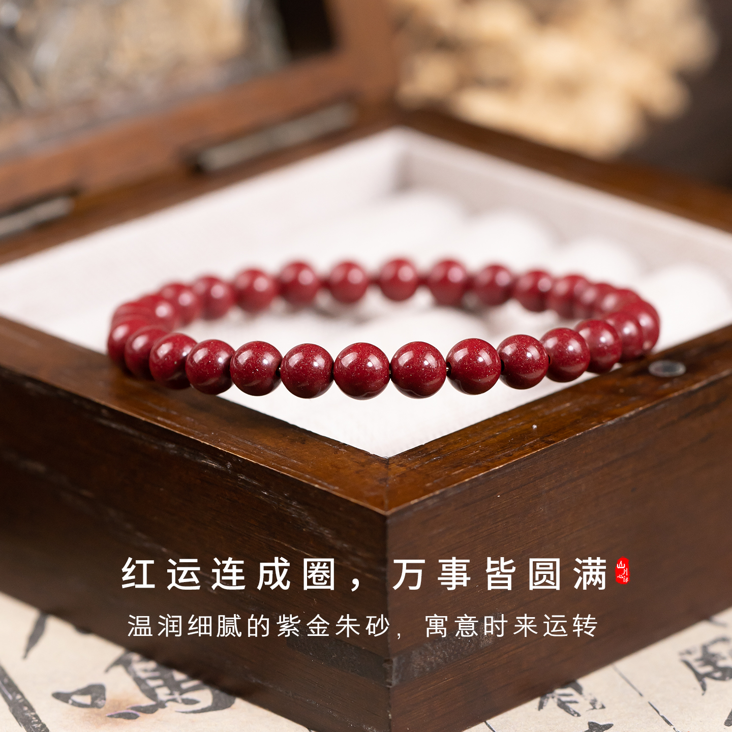 朱砂女士佩戴紫金砂手串4mm小米珠红色本命年马年转运珠手链叠戴
