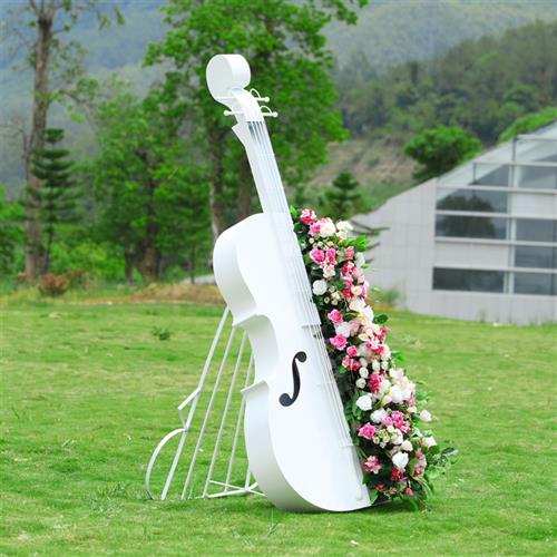 户外不锈钢大提琴花架金属摆件小区公园林仿真字母音符雕塑装饰品