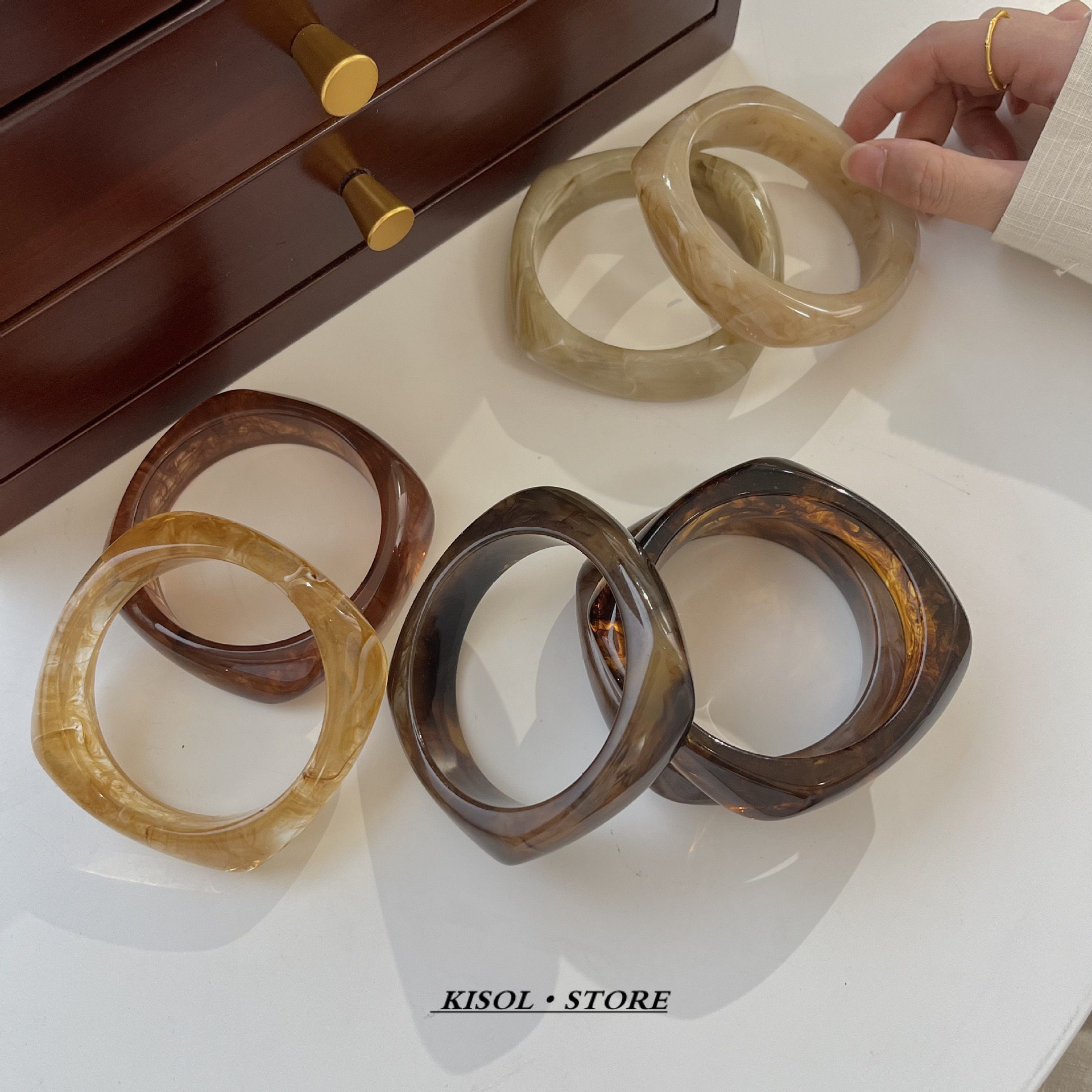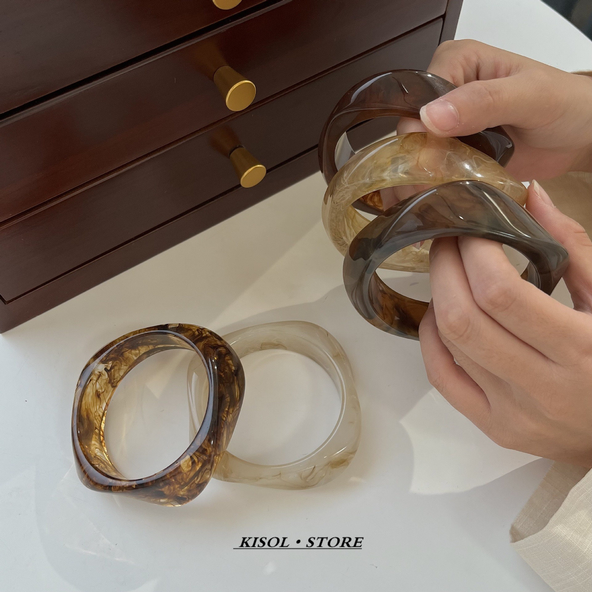 「入秋可可」欧美小众设计几何晕染咖色手镯树脂宽边手环醋酸手饰