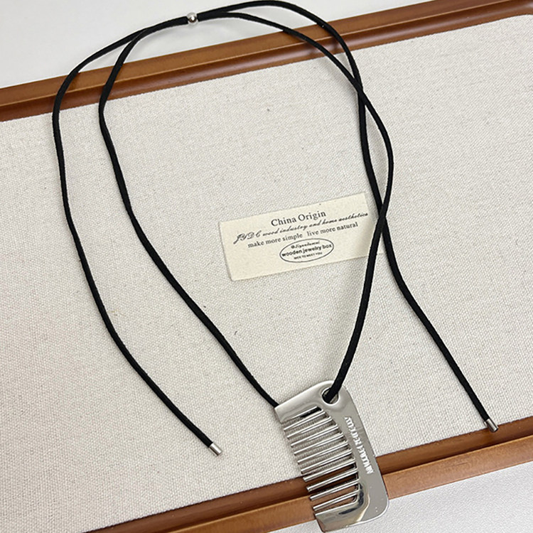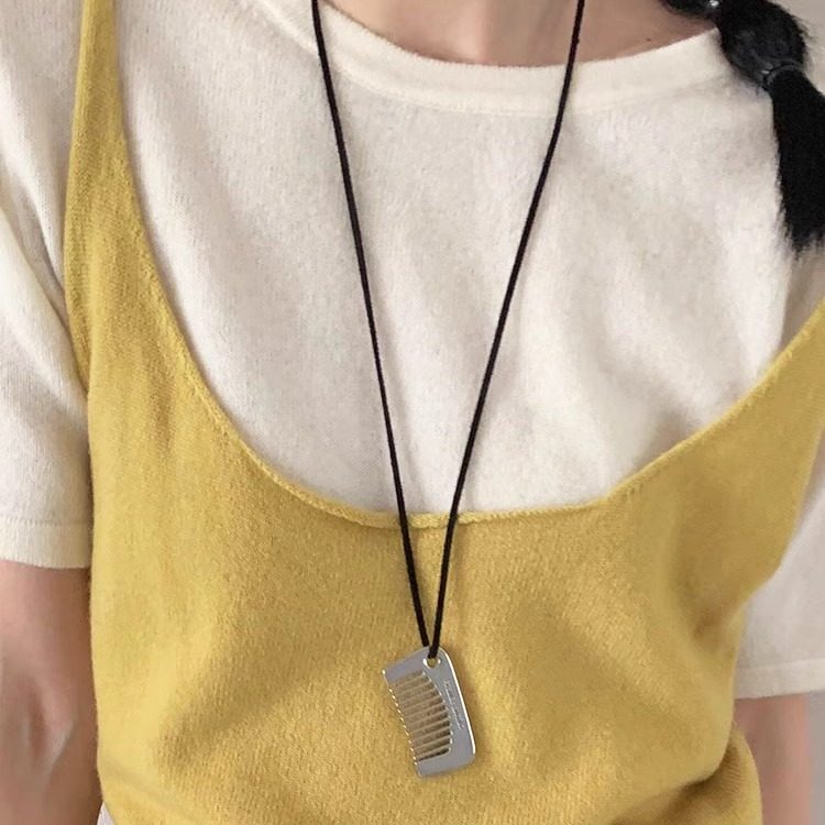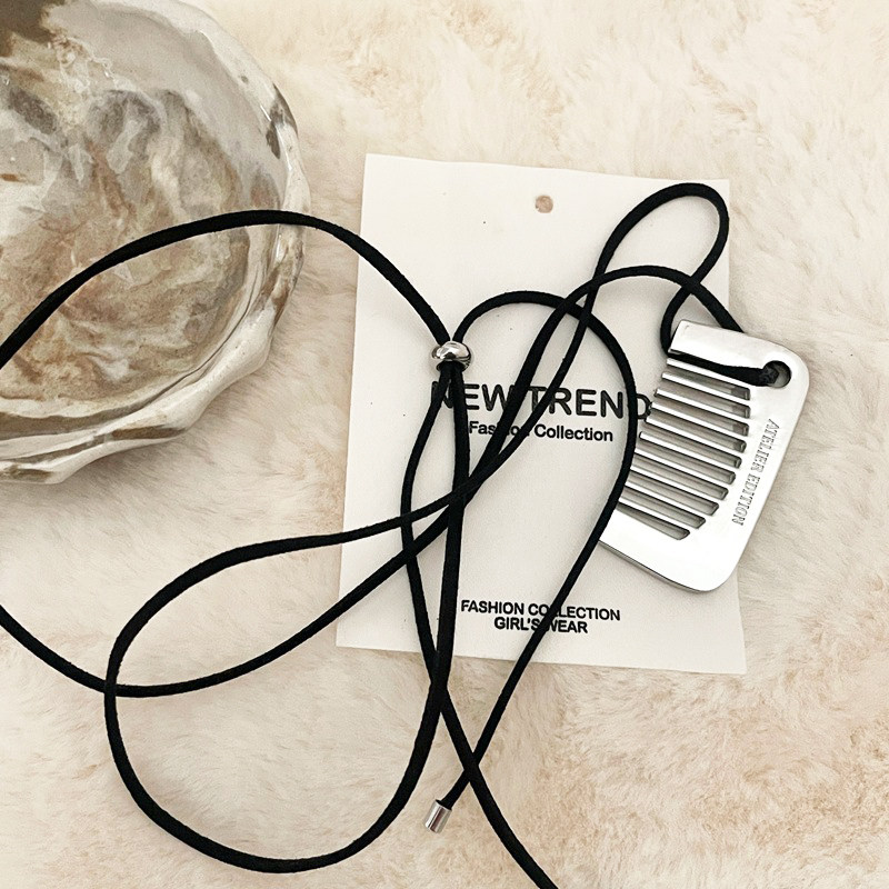 小版梳子项链复古长款吊坠女小众设计银色颈链2025新款毛衣链卫衣