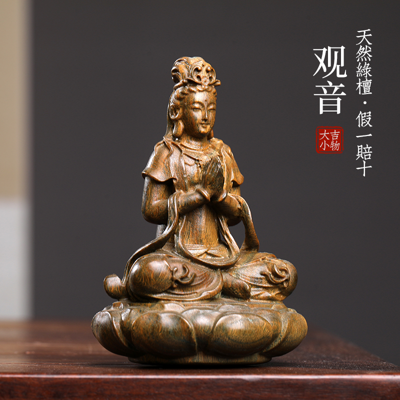 天然绿檀实木雕刻观音菩萨摆件本命佛文玩手把件人物工艺品装饰品