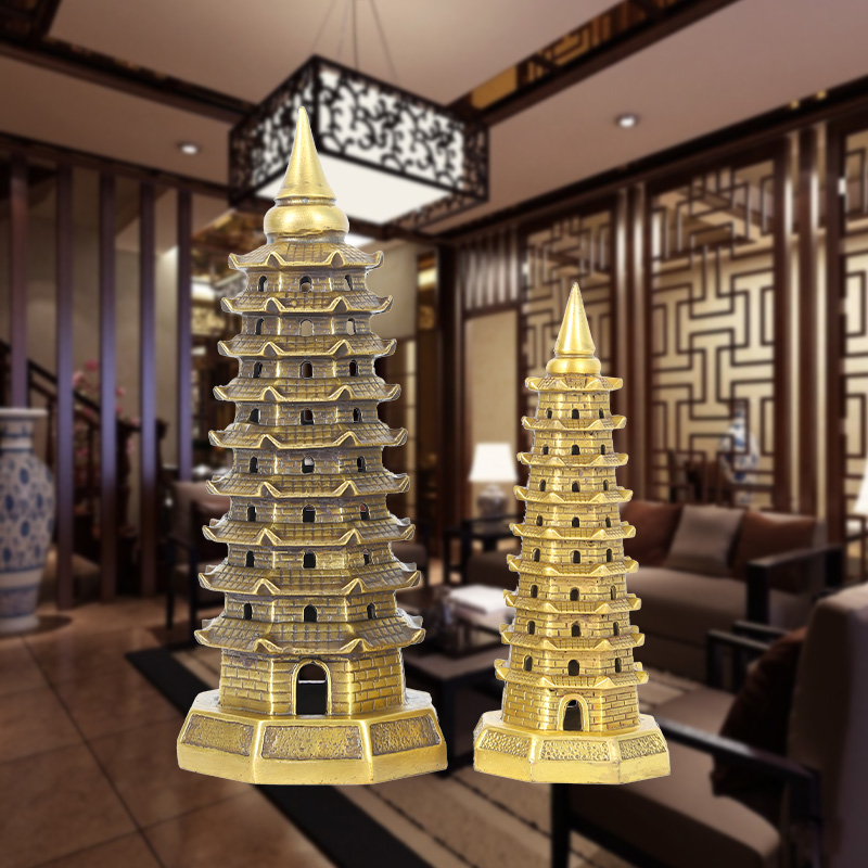 吉祥居李居明纯黄铜九层文昌塔摆件客厅办公室书房9层塔礼物