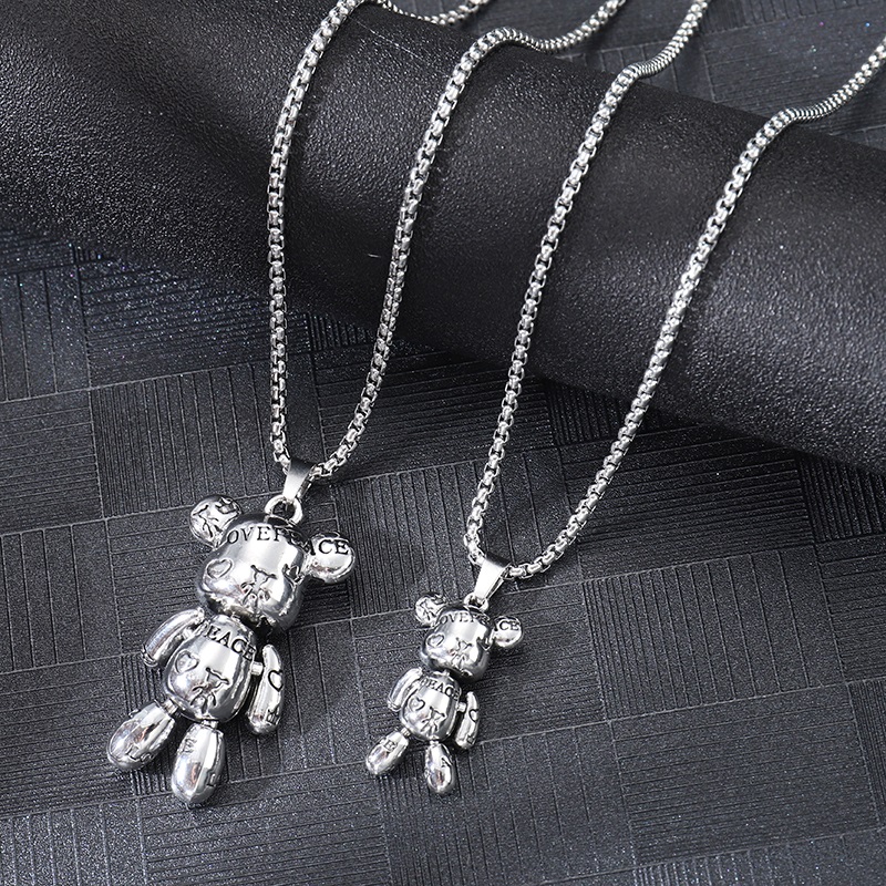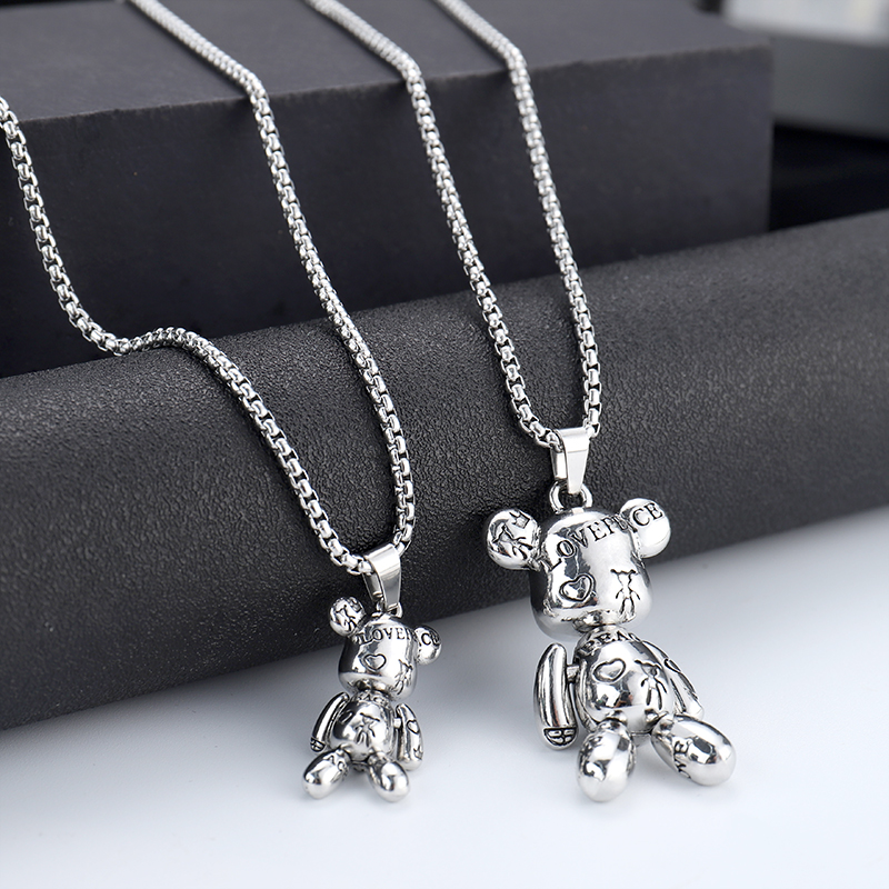字母印花暴力小熊吊坠钛钢嘻哈项链男潮情侣毛衣链女小众卫衣配饰