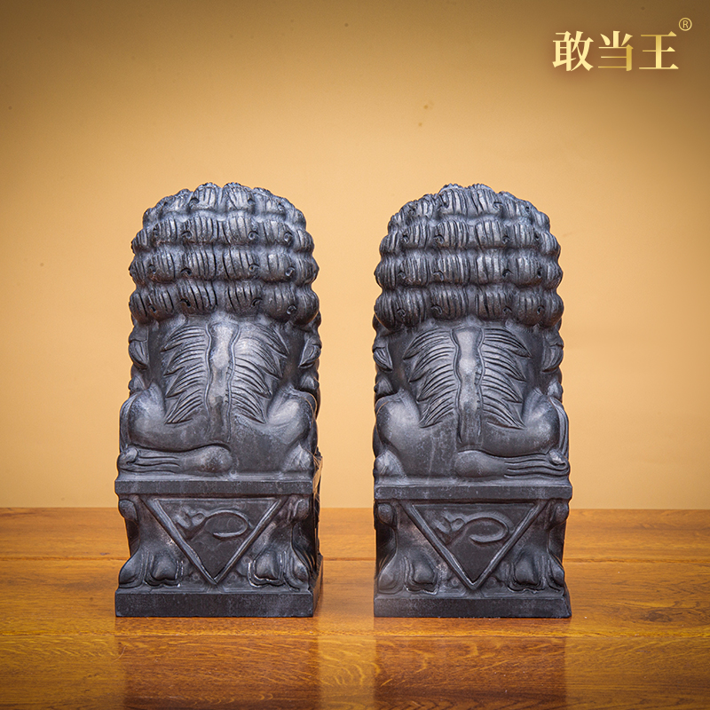 泰山青石狮子摆件一对门前门口石雕石头大小公母狮子看门泰山文创