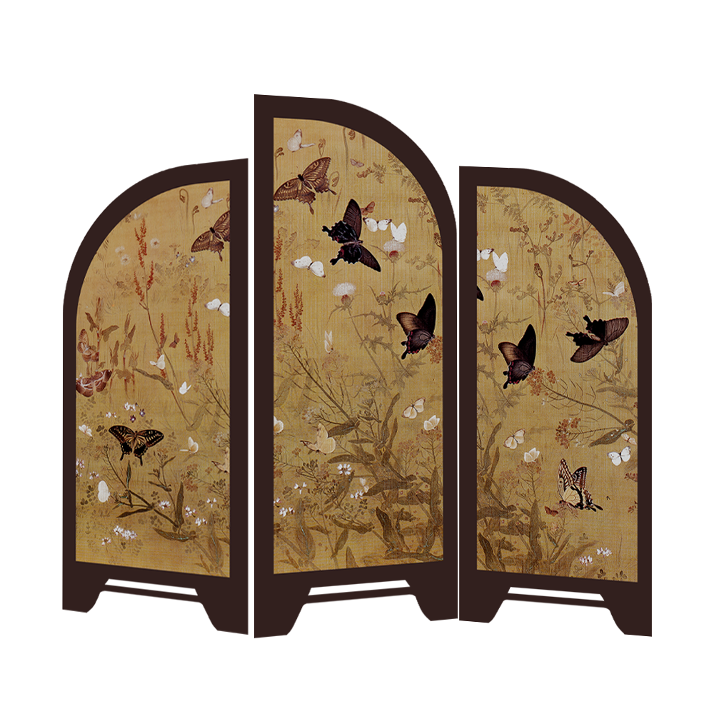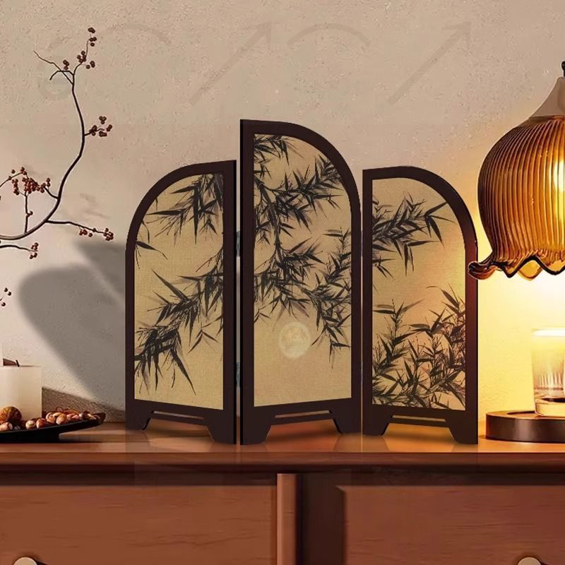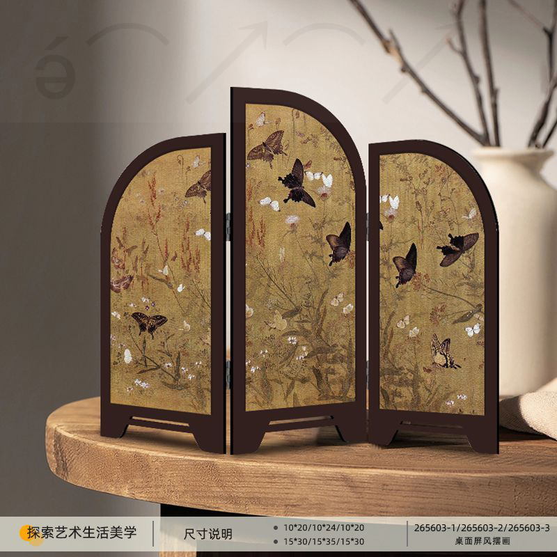 中古风仿古桌面摆件客厅创意小屏风装饰画花鸟山水玄关柜电视柜画