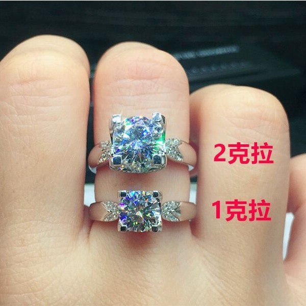 莫桑石戒指D色牛头钻戒女款pt950铂金12克拉钻石婚戒定制时尚精致