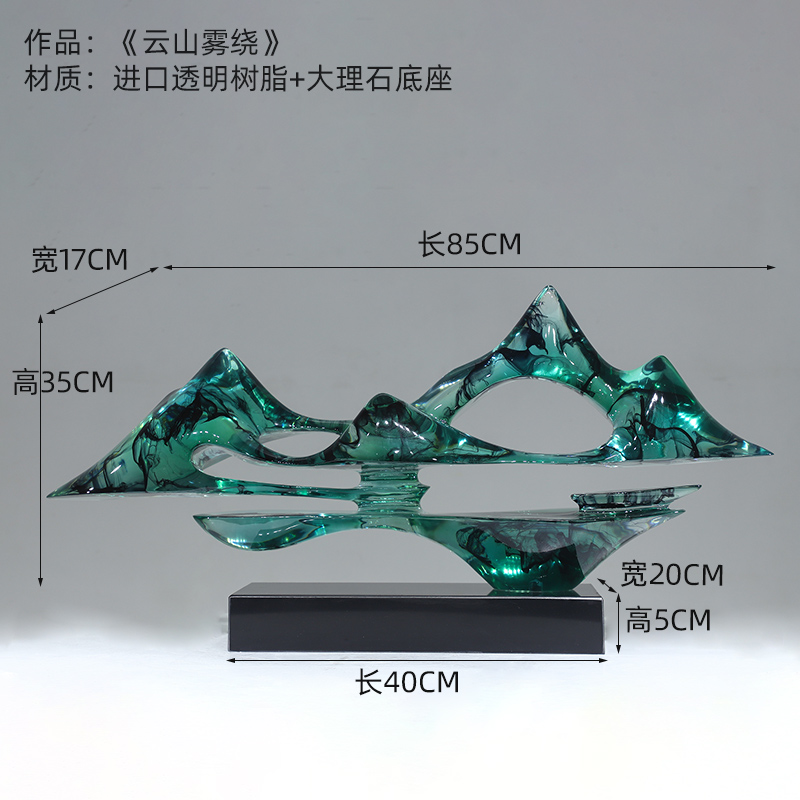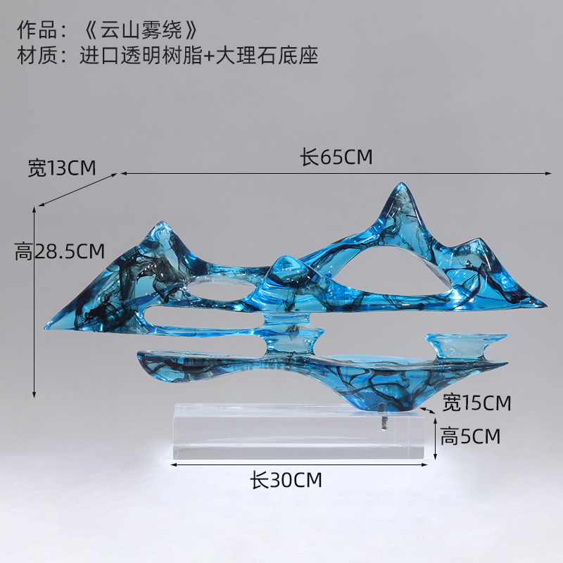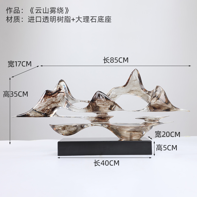 新中式售楼处酒店走廊假山雕塑客厅玄关电视柜摆件透明树脂装饰品